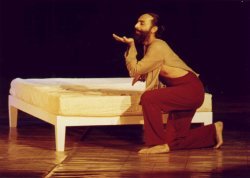 Q & A: Audience Artist Interface 21st Natyakala Conference - 2001 Chennai, India DEC 15, 2001 Navtej Johar (New Delhi) - "Tradition and individual talent" Jan 2002 ![]() His remark that he will lie down and scream on stage in the name of Bharatanatyam created more furore in the audience than if he had stripped!! That's something he just may do in the future… Q: In the piece called 'Pastime', how did you go about using images and work with Meredith Monk's music to make your work look Indian? NJ: After all this time, I've done about one piece with a commissioned piece of music. The rest have been music just super imposed. Sometimes we improvise with the music and if it gels, we keep it. Q: What inspired you to do what you did in 'Place of Path'? What's your thought process? NJ: I had in mind, some things from my movement vocabulary. I just start imagining things. I've been playing with water and have this strange affinity towards water. I don't know why for the last 2 years, I've done a lot of work with water. I love the texture of water, it triggers something. About 6 months ago, I did this thing for Buddha Jayanthi for which I had a costume made. It was constructed to be worn wet, that's the way the whole show is. I happen to be working with Sufi musicians for the last 2 years. The very first song is a rumi song. Along the way, I started to improvise with a conch, the last piece was with flowers. My work was clearly improvised but also very practiced; the movements were not all improvised. They were taken from my memory bank of pieces that were created in my studio. And I just remembered them. So the combination of improvising, structuring the whole piece leaving loopholes to contain different structures also came over time. Q: Regarding skills & communication… NJ: Before I came into Bharatanatyam, I was going to be a painter. So I tend to look at things very visually. That's my nemesis. Number 2, before I came into Bharatanatyam, I was into street theater for 2 years, very political, very strong street theater. When I make a work, which is not Bharatanatyam, one thing I don't want to do is fusion or any such thing. So, from the beginning, I did not want 'Place of Path' to resemble Bharatanatyam at all, even though it was totally influenced and prompted by Bharatanatyam. I did not want even a trace of it. These are elements that came to me, but the logistics must make sense. Like this is the costume I have, it must say something, the conch, the goblet…and I start improvising with them. But it's also a choice why I chose that particular object and not something else. Q: How do you make movement? NJ: It's totally out of impulse. I go there and it's like almost without thinking, I slap out a movement. Therefore I get it right away. Then I videotape it and start working on the movement. Once I've got it in the first form, then I draft it in different directions, give it the true qualities. The treatment starts after that, the first quality, the second and third quality, dream quality, direction or repetition, fast or slow, all these variations come after I have technically rejected some movement. So, in the process I create an awareness of who I am. I've to maybe trigger an impulse 6 times to make six 3-second phrases and then find the correct permutation combination. Q: How do you reconcile yourself to presenting shows like for the Rado watch launch, or dancing in a place where people, rather most of the audience are there just for curiosity than to seriously want to look at you. Is it necessary that you do it? You love doing it, or..? NJ: The first question is kind of valid. Jemima and I had gotten into this project. She had come all the way from England and after she arrived, we realized that the money we had to make this piece was very little. But she had come on the surmise that she would do it even for free. After she came, she realized that she could raise money and fortunately got this offer, so we made the piece in 2 weeks flat. It was literally to raise funds. It also cleared working towards the other piece, 'ReMembering' which would be premiered in January at the British Council. That's for the Science Festival, a serious piece which will explore science and technology and its effects on the body. So it was a time related thing. We started working on the initial piece and took elements from it to make the piece for Rado. I did it because I needed the money, I could not say no, it was done and it was forgotten. It's like a project, we have to go on. Secondly, I have absolutely no qualms in that I want to present Bharatanatyam in places, which were not meant for it. I've been practicing that by performing in Green Park Market, doing alarippu to thillana non stop!! My problem is not with Bharatanatyam, I absolutely adore it, I love it. My problem is in the way it's come to be viewed, it's that ire alone. I don't need to do all these things, which I've been doing. One can just stick to Bharatanatyam and feel totally fulfilled. Yet I do things which some see as unnecessary. I am not stupid. Something moves me to do it. And I do it because something bothers me about the way Bharatanatyam is viewed. I said 2 years ago that maybe 10 years down the line I will be doing alarippu and thillana with nothing else. But the process involved and everything else becomes part of my physical memory, so that I know it's OK for me to lie down and scream on stage, it's OK for me to sleep on stage, it's OK for me to strip on stage and yet be a very good propaganda for myself. I should be censoring my memory, which I think we are conditioned to. That's the actual reason why I do things that are not proper, not to shock, but just because something needs to be shifted, I think. Shocked gasps…shifting bodies….commotion and confusion of people shifting outside to protest!! That was more for the screaming part than for the stripping...maybe they heard it as tripping?!! Q: As a contemporary dancer and