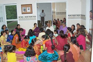 Visit by the Dhananjayans to Natya Dhaara in Atlanta, GA - Yami Joshi, Atlanta July 11, 2007 ![]() During the month of May, my dance teacher, Uma aunty told me that her gurus, Master Dhananjayan and Shanta Akka were coming to visit her here in Atlanta. She wanted her students to perform for them, and get their blessings. She wanted to organize a small event with a couple of items to be performed by her students. My teacher Uma Pulendran runs a dance school, Natya Dhaara in Atlanta, GA. After hearing this, I was excited but at the same time a bit nervous. All the other students were very excited too. Uma aunty called them for extra practice classes, so that we could do our best on the day of the performance. There were total of three items to be performed. One group would perform Madhurashtakam, which is a prayer about Lord Krishna. Another one would be a piece set to an instrumental classical music. The preceding performance would be a Pushpanjali, by me, choreographed by the Dhananjayans themselves. Everyone was waiting for the D-day to come. The program was on the 20th of June, at 6pm. The day finally came when the dancers were ready to do their best. There were many people, most of the students of Uma aunty and their parents. The program started with some warming up with some singing. Many of the students were not ready to sing: They were shy or said they had forgotten the words. To lighten up every one, Akka said that a Bollywood song or even an English song would be fine. Master and Akka talked with everyone. A well developed discussion began when the parents spoke to Master and Akka about their lives, and about how and when they take dance classes and camps. They emphasized the importance of remembering what you learn - knowledge is power. Master asked everyone various questions too. He asked students for how long they practiced, and told us how much they danced when they were young. Shanta akka also said that they danced for at least five to six hours per day. When she told us this, we were quite astonished. My memories went years back, when I had watched Master's and Akka's beautiful performance in Kalakshetra, in Chennai. From the Dhananjayans, we as students learnt that "only practice makes a man perfect," and without it we cannot pursue our goal. All the parents and students were vitalized after meeting Master and Akka.