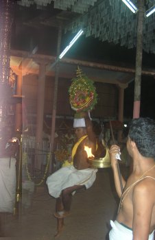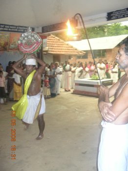 Thitambu Nritham - Kodoth Rajan e-mail: rajan_kodoth@yahoo.co.in July 13, 2008 ![]() Thitambu Nritham is the ritual art form in North Kerala that is more than 700 years old. It is mainly performed by Namboodiris of this part of Kerala. Late Vethiramana Sreedharan Namboodiri is known to be the "Father of Thitambu Nritham." Luckily this ritual art form has not died out with his withdrawal from the stage. Experts in this field like Matamana Sankaran Embranthiri and his disciple Brahmasree Puthumana Govindan Namboodiri are carrying on the great tradition in the north. ![]() The dancer, in the traditional style after performing the usual rituals, comes out of the sanctorum, and standing under the flag, holds aloft the replica weighing about 10kg - 30kg on his head and starts the divine dance. One Namboodiri to bear the thitambu, seven players on percussion instruments, and two persons to carry lamps - in all ten persons are needed to present this. The dance begins with 'Kotti Urayikkal' (drumming to make the dancer possessed). As the dancer comes out carrying the replica of the idol on his head, the Maaraar makes the characteristic drumming when rituals are performed. The word 'Thitambu' suggests the direct manifestation of the deity. This is placed over a decorated turban known as Ushnipeetam. Idols being carried on top of elephants during festivals as also replicas beings held on shoulders while dancing to the rhythm of percussion instruments are a common sight in South and Central Kerala. But, dancing with the replicas on the heads is a unique feature in the North. The origin of Thitambu Nritham cannot be easily traced. Replicas called 'chattam' are made of bamboo or wood within which a beautiful frame with intricate designs is created. Foot work is most important in this dance and this is executed to the rhythm of the drums. Each circumlocution is regulated by a different Thaalam (Thakilati, Atantha, Chempata and Panchari). Thitambu Nritham has undergone some changes in accordance with the trend of the times. Though the basic ones (Thaalavattom) remain the same, there are some changes made in drumming (thaalam). Innovation also adds to the novelty and variety of Thitambu Nritham. |