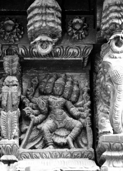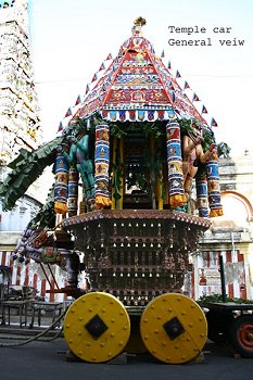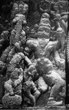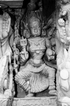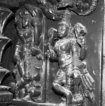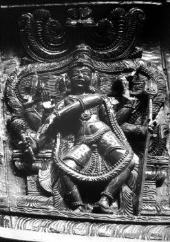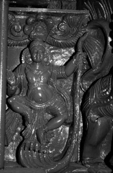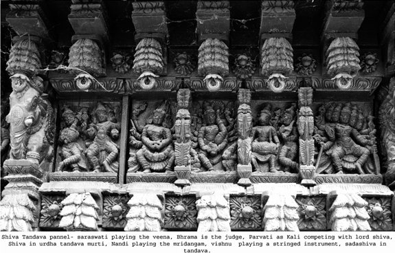 Dancing figures from the temple cars of South India Text and photos: Dr. Susil Pani, Pondicherry November 11, 2008 It is known that all the classical Indian dance forms have evolved from Natyashastra, the treatise supposed to have been written by sage Bharata. There are lot of evidences in the form of postures and inscriptions in temples all over the Indian subcontinent. The present study deals with the dancing figures seen in the temple cars of South India. The present day temple cars are made from wood which decays over a period of time. The temple cars are a big source of images telling stories from Ramayana, Mahabharata, Puranas, Vedas, Upanishads, and other scriptures. There are presently more than nine hundred temple cars in Tamilnadu and Pondicherry. As it is not possible to cover all of them, only a representative sample is taken for the study to include cars from Pondicherry, Thiruvannamalai, Chidambaram, Kumbakonam, Nagapattinam, Avinashi, and Milam. The present study has been broadly classified into dancing figures relating to Shiva, Vishnu, Shakthi and others. ![]() ![]() Shiva Nataraja: The Cosmic Dancer Shiva as Nataraja is the cosmic dancer. He is the master and source of all the dance forms. He is also the source of all art forms - dance, music, drama, etc… Shiva as Nataraja taught all the art forms to Bharata muni, the rishi from Bharat Desh (the land of Bharata). Bharata muni is considered to be a rishi of the Vedic era. Some consider that Bharata muni refers to a number of rishis of the Vedic time. It is said that Lord Shiva instructed Bharata muni to write the Natyashastra. It is considered as the fifth Veda after the Rig Veda, Sama Veda, Atharva Veda and Yajur Veda. Natyashastra literary means natya and shastra. Natya includes all art forms including dance, drama, music etc, shastra means the knowledge or codification and rules and regulations to be followed for the performance of Natya. Most of the Shiva temples in south India have a separate shrine for Nataraja inside their temple premises. A separate hall called Nata mandapam is present next to the Nataraja shrine for the dance presentations. The temple of Chidambaram has Lord Nataraja as the main deity instead of the usual Shiva lingam. Shiva is considered to have started all the one hundred and eight tandavas. These are presented as one hundred and eight Karanas. These are present in some of the temples including the Brihadeeswara temple of Tanjore and the gopurams of the Nataraja temple of Chidambaram. In the temple cars, the most common and most popular presentations are the Ananda Tandava, Rudra Tandava, Urdhava Tandava and Chatura Tandava. Ananda tandava is the Dance of Bliss by Nataraja and forms the most common Tandava. Shiva in this form is four handed. The right hand in front is in Abhaya mudra while the backhand holds the damaru. The left hand in front usually is in Gajahasta and the back hand holds the Agni. The left leg is raised in kunchita pose and the right leg is firmly placed on the demon Apasmara. Shiva has a quiet, smiling but serene face. Behind Shiva, one may see many flying Vidyadharas. In some panels, one can see Goddess Parvati as Shivagamasundari next to Lord Shiva. In the Dance of Bliss, Shiva is self contained. He is the source of all creation, vibration and movement. The damaru represents this source. The right hand in Abhaya mudra, presents blessings by the Lord, hence the protection provided by him for the sustenance and maintenance of life. The back hand holding Agni or fire destroys the old so that the new can be created. The right leg is firmly placed on Apasmara - which shows the lord having full control over the ego and all the sense organs. The raised leg is the final path for salvation or moksha. The Lord delivers his devotees from the illusion or maya of the outer senses and ego to realize the truth and unite with the ‘Divine.' ![]() ![]() The Urdhava tandava Shiva as Urdhava Tandavamurti is very popular in the temple cars. It is usually presented in a panel of images to include other gods and goddess. The story behind the panel presentation is that long time ago, there was a great debate among the devotees of Lord Shiva and Parvati as to who was a greater dancer. Hence to resolve the issue a great competition was held between Lord Shiva and Goddess Parvati. Other gods are seen to accompany this great event. Nandi is seen playing the mridangam, Vishnu playing the cymbals, Saraswathi playing the veena, Ganapati playing the tanpura and Brahma either playing a stringed instrument or sitting as a judge. In the same panel, Parvati is seen in her Kali form, in a fierce dancing posture. It is said that she could excel Lord Shiva in all the tandavas. In the end, Shiva does Urdhava tandava. Urdha literally means raised up; in this tandava, Shiva is seen to raise his right leg vertically up with the foot of the leg facing the sky. This image of Shiva is called Urdha Tandavamurti. He plays the damaru with two hands in front. In some panels, the left leg is shown raised up; in one rare panel there are two images of Lord Shiva one with right leg raised and another with left leg raised placed side by side. Lord Shiva is seen with four arms but sometimes with eight arms. Two hands play the damaru and other two hands are in Suchi mudra. Kali is seen with eight or ten hands holding many arms in the same panel in a dancing posture. In some she is seen accepting her Lord's supremacy as she is not willing to raise her legs in the presence of men. In some she is seen below the image of Lord Shiva with folded hands; sometimes she is seen angry and dismayed and feels that Lord Shiva has tricked her as he is aware that she would not attempt such a movement in front of men. It is also an indication that women in general should not attempt such extreme movement during dance presentation while men are allowed to do so. In fact this type of tandava forms a main dance item for the Mayurbhanj Chhau, M