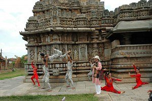 Ijjodu - Our 'step' into cinema... - Geetha Ballal, Bangalore e-mail: nritarutya@rediffmail.com April 28, 2010 ![]() In the blink of an eye, everything around me seemed to buzz with excitement. "Now, turn your hip a little more," "hold that pose, now smile," "where's the file I saved yesterday?", 'you think this shade looks better on the eyes?", "I think red is the colour for costumes," "brighten those eyes - it's for the camera!!", "did you get those plaits?" My routines never got bored ever - research on what costumes to wear, what accessories needed to be purchased, what kind of 'look' to be presented, amid hectic rehearsals - each shot conceptualized, changed, focused, changed yet again.... It had to be perfect; after all it was our first movie. ![]() The day arrives when my company and I have to travel to the location - the beautiful temple of Lakshminarayana in Belawadi - a village near Hassan. Our schedule for the coming 3 days was to finish the 5 minute title track, covering roughly about 40 shots. But first, I pick up my set of brush and paints, yes, paints, to finish up some unfinished leaves and lines on our stark red leotards. Early next day, I wake up to loud knocks on the door and shouts from the production manager at sharp 4.30am - that's the way he likes waking his 'crew.' As we prepare for the first shot, rehearsing the movements, trying different angles with the camera and setting the lights, I am amused to see curious onlookers, who thought we were famous film personalities; few who dared, asked us our names and details of the film. I would often look at them and smile only to receive howls of laughter and sniggers in return... Sigh! So much for congeniality. ![]() ![]() ![]() I bring together my concentration to the task at hand - we had to give our best in the hot sun, be it delivering complicated lifts with ease, moving perched on the slippery roof tops/gopuras without looking scared, hanging upside down on narrow stairs, rolling over a hundred marbles and not flinching, hanging from a shaky pipe, spinning plaits wildly without hitting anyone... the list is endless. The heat of the place added more woes to my tired and tanned body. At times, when others were in a shot, I would collapse just about anywhere to catch a siesta. ![]() One has to be innovative instantaneously; what works from the mind's eye may not always work from the camera. I was curious to know how the shots looked, whether the thought and concept of my choreographer was translated or not. How did the composition look? Did I do a good presentation? Well, I must say I'm quite proud to see the result of this very exciting shoot. What's more, the movie has been specially screened at prestigious film festivals like TIFF (Trishur International film festival), OSIANS film festival, Delhi, and Panorama-IFFI (International film festival of India). ![]() ![]() ![]() ![]() The shoot has taught me a lot of things, patience being one of the prime most. As I waited for the shots to be set up, positions of lights being changed, shifting spots for better shots, trying out variations of movements, or just waiting for my turn in the shot with the costume and makeup intact, I realise all of them work towards getting the BEST, nothing less!! There may be another chance - to go back and re-shoot what didn't work, but this moment, the feeling of the first shot, the first shout of "action" will never come back... It will forever remain a memory in my mind.... Geetha Ballal is a primary dancer and Associate Director of Bangalore based contemporary dance company Nritarutya. She is known for her patented acrobatic stunts and currently works towards training the Youth team, Mysore, in creative body-conditioning. |