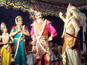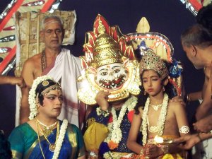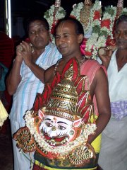 Whenever Narayanaswamy Iyer visited Madras, he used to stay at the veena vidwan Thyagaraman's house, the grandson of Umayalpuram duo and Ranjan used to send his car for Narayanaswamy Iyer to have him over at his house for dance lessons. On a couple of occasions, I saw Ranjan in Bombay in his later years but did not talk as I was not aware of these tidbits then. Oothukadu Ramanathan, who used to don the Narasimha mask during the Bhagavatamela in Oothukadu, was my paternal grandfather's uncle. My father recalled seeing that mask in his house. He lived right across what is believed to have been Oothukadu Venkatakavi's house in the agraharam. As I gathered in Melattur during my 2010 visit, the same mask from Oothukadu was brought to Melattur as a backup when factionalism surfaced in Melattur. It is interesting to note such 'inter-play' amongst the 'players' (no pun intended) of Bhagavatamela of these villages. Paruthiyur Venkatasubramani Iyer's son, Rao Saheb Subramani Iyer, editor (post retirement, at the behest of Kanchi Maha Periyaval) of 'Kamakoti' magazine published out of Sankara Mattam in Kumbakonam, and father of my uncle Gopalakrishnan, was a great patron of Varadharaja temple in Melattur and has contributed much for the upkeep of the temple in his time. That noble work is being continued by my uncle's family members. ![]() With such a luminous lineage as the backdrop, I headed to Melattur for the second time in 2010 (since my return to India 6 years earlier), more to watch the recreation of Narasimha avatar by Natarajan and troupe but, ended up digging a bit more beyond the roaring Narasimha on stage.