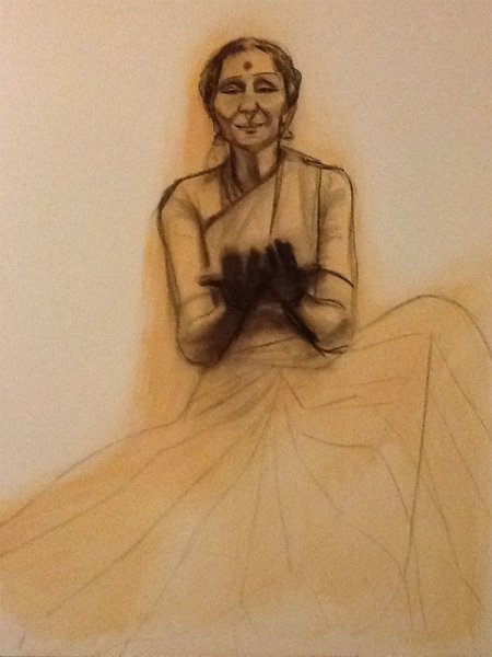 Balasaraswati (1918 - 1984) Sketch & text: Ashwini Kaarthikeyan e-mail: ashwinikaarthikeyan@gmail.com April 17, 2013 ![]() In reading the biography 'Balasaraswati: Her Art and Life by Douglas M. Knight,' I learnt that official documents are able to trace back eight generations of the family history of this legendary dancer. Today, I feel consumed by the depth of devotion and reverence towards the classical arts in Balasaraswati's rich maternal lineage and their hereditary tradition. A few days ago, as a student of this classical dance form, I found myself aching for Balasaraswati's blessings. On the night of 13th of April, as I listened to a classical composition in praise of the Devi - Mother Goddess, my intense longing was transformed into a portrait in charcoal of Balasaraswati, on a 5' x 4' canvas. Ashwini Kaarthikeyan is a poet, artist and Bharatanatyam dancer. facebook.com/ashwinipawarkaarthikeyan / www.artisdates.com Post your comments Please provide your name and email id when you use the Anonymous profile in the blog to post a comment. All appropriate comments posted with name & email id in the blog will also be featured in the site. |