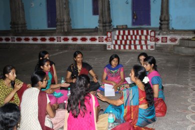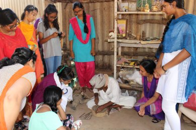 We did not return to the temple the next day. Instead, Teacher took us to experience some of the arts unique to Tanjavur. We drove to a tiny village where the walls were painted with beautiful murals and chickens ran around behind the trees. This village is special in that it makes by hand the unique sculpture and painting that Tanjavur is famous for, in comparison to factories which mass-produce and sell them. A master sculptor showed us his craft, as he mixed together 5 different metals for the alloy, and then poured it into a (also hand-made) mould of resin, which was then set into a kiln built up and buried in the earth. He told us about the procedure, and allowed us to handle one of his sculptures which were in the process of being made. He then introduced us to his father, a tiny old man who sat near him, lovingly chiselling details onto a sculpture of a devi, such as the contours and expression on her serene face and the folds and pleats of her sari. The old man's work was so deft and elegant that it seemed almost impossible that the finished creation had been made by human hands. Afterwards we were invited to view the village shop, where they sold their sculptures. This shop was full of bronze sculptures from images of Krishna - both as a baby and as a youth - to fearsome Durgas, along with ghoulish protections from the evil eye, decorative lamps, and tirtha-holders. That same village also creates the famous Tanjavur paintings, which have gold and precious jewels (later they began using gold leaf and semi-precious stones for economic reasons) embedded in them as part of the decoration. The sculptor told us that the village split the work relatively equally, with the women working on the paintings and the men on the sculptures. We were all awed by the quality of the paintings - we saw one Saraswati painting with a face so serene and beautiful that my mother couldn't help but buy it! I was enchanted by a delicate miniature featuring a woman (probably Damayanti) gazing wistfully at a swan at night - it was not a typical Tanjavur painting, with gold and jewel decorations, but the romance and elegance of the painting was such that it was complete without any of them. After the village, we went to a veena workshop in the town nearby, where we learnt about the procedure of making a veena and the work that was involved in it. The lady who owned the workshop told us about the two types of veenas, and the significance of the wood used for it and the way each step of making the veena contributed to the final product. We were also shown into the front room of the shop, where we were invited to try our hand at plucking at the strings of the beautiful instrument. In the afternoon we went to Thyagaraja temple at Thiruvarur, which was of especial interest to us as dance students because it is said to be the seat of Bharatanatyam. There a priest showed us around the temple, telling us about the intricate history which had unfolded there. We saw the thousand pillar mandapam, where the Bharatanatyam dancers of old would have performed, and the huge, towering chariot which a Chola king was said to have ordered his son to be run over by (the son had run over the child of a cow, who had then demanded compensation). We were also taken to see a chariot which was being constructed for the Chariot Festival next year - the current chariot is already the largest in India, with its successor being built to surpass it. The chariot, even though it was unfinished (and had been in the works for several years) was breathtaking- made of deep, dark wood, it towered above us, adorned with several different and intricate images of devas, devis, gandharvas, gandharvis, and many other holy and celestial figures. In the evening we went to the immense water tank of the temple, where Teacher taught us to create kolams. We had seen several kolams before, especially in Chidambaram during the evening procession, and so this impromptu tutorial was very much enjoyed; it was almost meditative and soothing in its execution. The next morning, we awoke up at 5am to dance in Brihadeeswara temple - we had learnt our lesson from Chidambaram, and so we all hurried to dress to arrive on time! We danced in the early morning, when it was still cool and slightly dewy, and were then led by the same guide as before to see the inscriptions on the temple façade. These inscriptions were unique to the temple in that they proclaimed the exact amount given by each individual as donation to the founding of the temple - highly unusual, when a king would typically assume acknowledgement for that donation himself. After breakfast, we made our way once more to the temple to receive an official tour from the same guide. First we went to the temple museum. This museum had extensive information - great boards of both Tamil and English explaining the history of the temple and the legends and lore associated with it. There was also a considerable amount of art - mostly photographs of paintings that lined the inner corridors of the temple: these had been cordoned off from the public due to damage which had been done to the paintings over time. We also saw a display of stone karanas. After lunch, Teacher told us that she would be leading a second workshop for us. Initially, we repeated what we had learnt at Chidambaram, recounting what we had done over the past few days through the medium of Bharatanatyam. We learned about the importance of nrittam, nrityam and natyam, and about the importance of combining the two when performing dance. Then we talked about the history of devadasis, and their significance in shaping the way Bharatanatyam is performed today. To our delight, Teacher then taught us a new dance, as she had promised. It was dedicated to Lord Shiva and the beauty of his dance. This workshop marked the end of the dance trip, which was so packed with activity and excitement that it felt to me as if a whole month had passed instead of a week! I had 