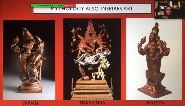All roads lead to dance - Samyukta Ninan e-mail: Samyukta.Ninan@bluebellsinternational.com May 10, 2021 "Many people have said many things. I can only say I did not consciously go after dance. It found me." - Rukmini Devi Arundale There are not many moments in life when opportunities knock at your door. This I have discovered. But when they do, I should say embrace them and not let them go. About three years back, as an educator teaching history for nearly 11 years in a private school in Delhi, I believed that my relationship with my students was merely based on content transaction. Today I have completely changed this view, and that happened when dance found me. Being a student of history, I attach a huge importance to the origin of everything. The past appeals to me much more than the present. And this has helped me immensely in understanding dance. If one had to look simply at the 9,000 year old paintings found in the rock shelters of Bhimbetka, there are evidence of dancing figures drawn all over the cave walls. Is it possible that dance came even before the written language? Many historians claim that it did, as stories were orally performed using dance as a medium and passed down many generations. This makes it so much easier to understand why we respond to dance and music. It has been a very powerful medium of expression for centuries and continues to be so. We as educators at times tend to focus at learning based on all the possible data that we use for testing our students. Then again how much can we learn about an individual through a data driven test? Somewhere we as educators have forgotten that humans are the most beautiful species and there are layers and layers that never reach the surface, because we choose to see what we want to see. I began to think differently though, and for that I feel going back to learning dance helped me understand that learning cannot always be data driven. ![]() Mythology - Visual art - Performing arts I am learning Bharatanatyam under my guru Geeta Chandran and a lot of her own interaction with us, her students, made me reflect a lot on my practices as an educator. This was definitely an important moment whereupon, while learning dance, I began to question my own methods of teaching. I reflected on what my actual role was as an educator. Was I to be merely seen as someone who transacts knowledge without a sense of purpose? Should I not go beyond the textbook? Can I empower my students to develop a love for Arts and Aesthetics as an extension to my history classes? Could I as an educator help them develop a strong sense of belonging with India? Armed with these questions in my mind, I began to re-look at my role as an educator. One of the first experiments with my students in class, was beginning with a Mira Bhajan, "Hari main toh", sung by the grand dame of Carnatic music M. S Subbulakshmi. I distinctly remember while dancing to this Bhajan in my dance class, I had felt a heightened sense of emotion, something that I had never experienced. This piqued my interest, could one feel so moved while listening to a song, and can that affect the way we perform? In my classroom I shared the same music with my students; the first five minutes went by. I could notice many of them shifting around, and I did feel that perhaps I was too hasty with my experiment. However a silence engulfed my class, they were lost in the song. It had taken them by surprise, my otherwise restless class seemed more focused and relaxed. That was the moment for me, where I believed that bringing in a new element to my class helped me give them an experience that they had never felt before. Throwing them off balance with music or even a dance piece, made them sit up and watch a performance carefully. Stories of all kinds enthrall me, and teaching students through storytelling is even more engaging. A lot of educators stick to the usual method of textbook teaching; I never use the textbook. In fact, the world outside the textbooks excites me. Children of all age groups have a vivid imagination, and it is an equally imaginative teacher who brings the world into her classroom. While my own engagement in dance has a huge role to play, I feel what fascinates me about dance is its own rich story telling tradition. For me dance is all about the story that it conveys using the dancer and the art in itself as its medium. When Bharata Muni composed the Natyasastra in the 2nd C BC, India had its first manual on classical dance. Even more fascinating is a story attached with it.The first dancers were the Apsaras (celestial dancers) who performed the first dance drama for a celestial audience. After the performance, Natyasastra narrates that Shiva suggested that dance and dance movements had to be part of every performance henceforth. The wise Sage Tandu after whom the dance Tandava was named, was requested to compose and curate dance performances. He was to teach dance movements to the celestial dancers. It is said that Bharata Muni then takes the help of the Apsaras to train actors and dancers to perform in another dance drama. Thus the idea of classical dance begins to take shape in these stories, and these stories find a way into my classrooms. ![]() Mythology inspires art Classical dances are huge champions of Indian mythology; a large part of India's story telling traditions resides within the classical dances. My own understanding of mythology has increased mainly because of dance. I am not just a student learning the technicalities of Bharatanatyam, but I am delving into a holistic ocean that empowers the learner to go beyond what they see. In turn as an educator, I share my learnings and get my students to look deeply into the tangible and intangible diversity within India. While listening to the poetry of Andal, a female saint, in a webinar with dancer Anita Ratnam, I was able to share the same with my students. Our history classes went beyond textbooks, they talked about love, longi