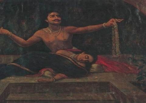 It is said that the family priest Vashishta sent a message that once upon a time, Indra growing apprehensive of the rigorous penance practiced by Sage Trinabindu, sent the celestial damsel Harini to interrupt him. She was cursed, 'Be thou a mortal woman in the sub-lunary world.' 'I am entirely subject to the orders of another; please pardon my offensive conduct,' said the celestial damsel. The sage then ordained her to move about on this earth till she beheld celestial flowers. 'She became your queen Aja, and got the cessation of her curse as the garland fell on her. Enough is your brooding over her loss; birth entails death: this earth ought to be taken care of by you, since a king's regal bride is the earth. You cannot regain her even if you follow her in death; different are the paths of those that go to the other world, determined by their own actions here.' King Mandhata ![]() King Mandhata was also a king of the Ikṣvāku dynasty. Mahābhārata says he was a son of the Sūryavanśa king Yuvanashva of Ayodhya who was childless. Once, he went on a hunting expedition and with thirst drank from a pot filled with water kept in a hermitage. Sage Bhrigu told him that the water was meant for his wives, so that they could give birth to many sons and now, Yuvanashva would give birth to a son who would emerge from his abdomen. The Devā-s led by Indra brought out the child and divine milk came out of Indra's fingers and nourished the baby. His prodigy was obvious and his growth was rapid, in knowledge of Veda-s and military sciences. Mandhata conquered Pātala and half of Svargaloka and became lord of the three worlds. He gave away colossal gold statues to the Brāhmana-s and cows as charity during the many Ashwamedha and Rājasūya Yagñá-s. Mandhata married the Chandravanśi princess Bindumati, the daughter of Shashabindu, King of the Yādava-s and their sons' stories are also related in the epic. Unsung characters for adaptation in dance (Part 2)