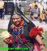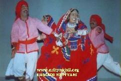 MATHURI, KOYA AND LAMBADI DANCES OF ANDHRA Apr 2001 Based in Secunderabad, P Narasing Rao and his Nrityanjali Academy which specializes in contemporary and ethnic folk dances of Andhra Pradesh, have developed many street dramas and other media to educate the slum dwellers about the social problems. Nrityanjali Academy made a humble beginning in 1984 with a small team to preserve the traditional folk art forms of Andhra Pradesh state. Today they are proud of the growth it has achieved in different areas of specialization and its size. Nrityanjali presently has highly motivated exclusive, specialist groups in Community Development, Event Management, Community Folk Theatre and Folk Dance. Here are some photos and information on some of the traditional folk art forms and folk theatre of Andhra Pradesh state in India. MATHURI