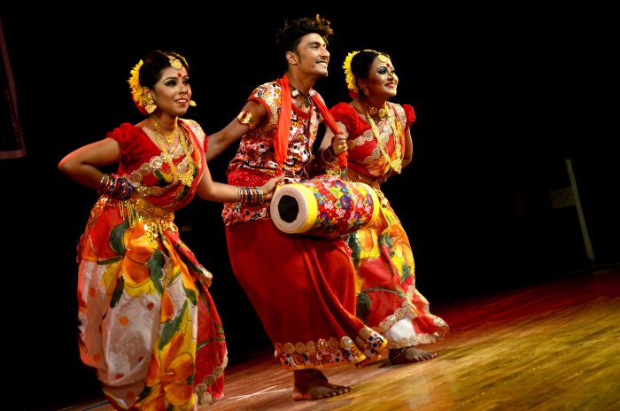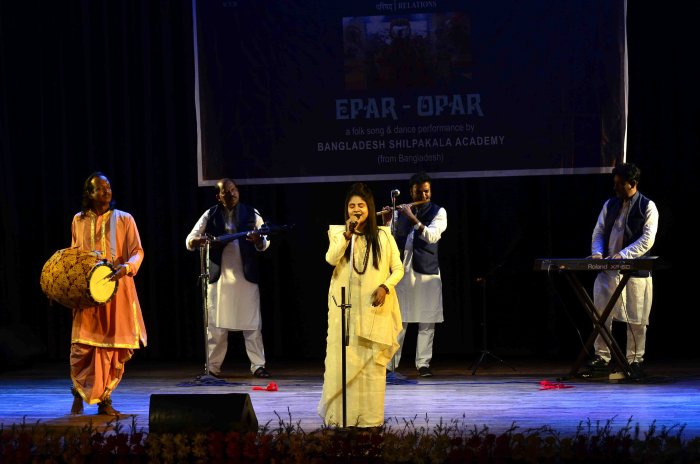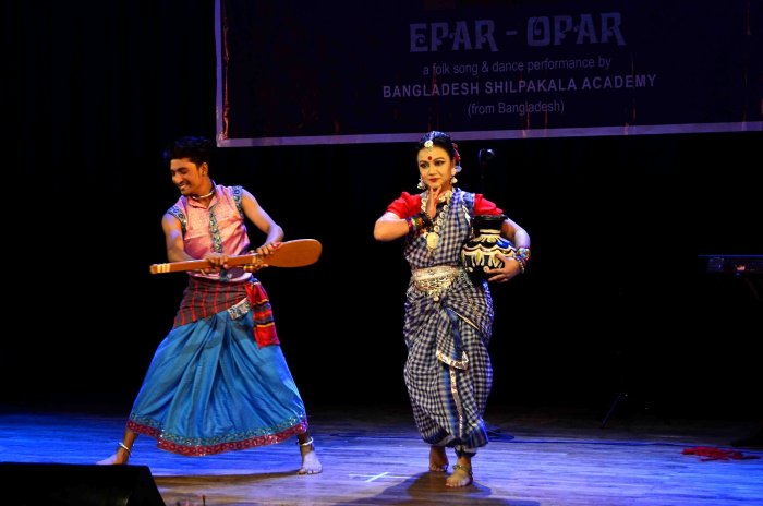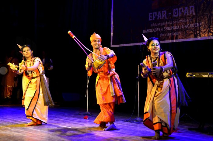 ![]() e-mail: ukb7@rediffmail.com Dissolving borders Photos courtesy: ICCR Kolkata October 23, 2017 When Bangladesh Shilpakala Academy, the foremost cultural organization of that country, showcased recently their folk dance and music festival in New Delhi and Kolkata (Oct 12, 2017), there were high expectations of the treasure trove they would open and the cultural nuggets it would reveal. Their eminent folk-poet Abbasuddin Ahmed had written once, "Because all village people are simple, because they think simply, because their songs are simple, because their subject matter is simple, they talk of their simple joys and sorrows, and because people, the tune, the subject matter is simple - - all folk songs of the world are alike." This applies to folk dance as well. With the simplest of lyrics sung in unison, the Muslim womenfolk in Sylhet, Bangladesh, bond together and vent their pent-up emotions within the cloistered milieu of domestic marriage rituals in Dhamail song and dance. Moving in circles and clapping their hands to the musical rhythm, the leader sings first and then the others join the chorus: O the darling moon-faced one, do dance along..., exhorting the little bride to traipse, but not dare to lift her tiny feet from the floor lest she offends the elders! And even in the closed Islamic society, the women's lyrics characteristically invoke Krishna and Radha: Dance like Rai, and dance swaying like her beloved Kanai... In the river-studded land, melodies simply ripple along from shore to shore and anklets tinkle at the simplest of scattered homes. While the lonely boatswains sing of their despair in Bhatiyali, the oarsmen sing together in jubilant Sari. In the northern part, where the dusty, rugged, muddy roads take the place of rivers, bullock carts replace boats and Bhawaiya and Chatka take the place of Bhatiyali. Bicchedi is the song of separation. A wide spectrum of music, in the garb of Baul - composed by great mystic songsters like Hason Raja and Lalon Shah - is accompanied by Sufi-like movements by dancing minstrels in ecstasy.