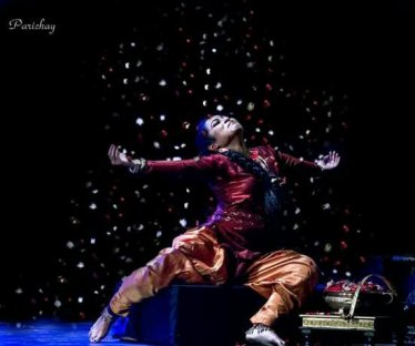 Hridmajhare (In the Heart of Hearts), presented recently by Abantipur Om Foundation, had an elderly Chitrangada (Priyanka Karmakar) ruminating thus, taking recourse to the poet's 1892 verse-version, to make the cardinal point: I won't beseech you through my outer beauty, but would charm you through my love… Opines the choreographer Shyamal Mallick with training in Kathakali and contemporary dance, "Our title suggests that the true love resides within, and can do without the sham adornments of the exterior." Donning the role of Arjuna, he used for himself Kalaripayattu and contemporary styles, with an assortment of Kathakali and Bharatanatyam mudras, while Chitrangada (Moumi Dasgupta) used well the basically lasyang Bharatanatyam. But what captured the viewers was a choreographic amalgam of a bewildering variety of styles and forms. The visual narrative established the core tenet - the negativity of mind and taking up a daring contrary stance - by masked dancers who forcefully discarded their masks. This was the beginning with gymnastic extravaganza that yielded to a serenading of the inner grace. The grooming of the princess as a "prince" alongside "hunter boys" as companions was steeped in Raibenshe, gymnastics, Kalaripayattu and Chhau. The first flowering of amour was accompanied by a blending of Bharatanatyam with contemporary movements. Arjuna's refusal to accept the gawky princess and the latter's recourse to both Madana and Rituraj - executing Kathak - was a take-off from Tagore's verse-play. Some striking visuals followed, with gymnastic "pyramids" and "temples" created on stage that provided underpinning of Chitrangada's solemn resolution not to be misled any more. The gorgeously bedecked princess was clearly mere ephemera. A satiated and obviously exhausted Arjuna then sought to retreat. The villagers looking for their missing princess - vigorously pursued by dacoits performing leaps and back flips - - were a delight. The final denouement and the emphatic reconciliation of the surging femininity with the conceding male bravura was well etched. ![]()