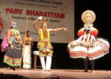 ![]() e-mail: ukb7@rediffmail.com The Yuletide Cadenza Photos courtesy: Asim Dattagupta January 6, 2018 Kolkata's Christmas spirit - extended easily up to the New Year night revelry - has long lost its sheen of being a mere religious affair. All the Masses conducted in the worthwhile churches - including the most colourful one in St. Paul's Cathedral - spread only the noble message: "Goodwill to all and malice towards none." The nostalgia for having been a British capital - lost more than a century ago - is still palpable in the strong Anglo-Indian quarters of Boe Barracks and the royalty-tinged trinkets on sale at the Hogg Market. But the surging crowds could not give a damn and overflow into the most happening streets where any vehicular traffic is out of the question for quite a while, and the goodies like Flurry's cakes and Trinka's savouries continue to be mouth-salivating and delicious. The only sad shadow that is looming large this year hangs from the Metro Cinema arcade - - the undisputed trysting spot for decades of lovers - which is now yielding to the hammers of the other Metro: the under-and over-ground Rail arteries of the burgeoning city. Parva Bharatiyam, the festival of music and dance presented from December 23 to January 1 by the Eastern Zonal Cultural Centre in the metropolis, celebrated the Season of Peace and Amity with a sumptuous feast for the dilettanti, cutting out, for this critic, the grand musical repast: from the classical vocals by redoubtable Ustad Rashid Khan on the first day, to the delectable modern songs by Jojo on the last day, the accent on classical genres of dance - - usually not savoured together - on other days could not be missed. The curtain-raiser was the "semi-classical and folk dance" by Barnali Dance Troupe from Assam, who opened with Shiv Vandana, based on Shankaracharya's Shivashtakam, danced as a solo Kathak that could hardly pass muster. After yet another lackadaisical group dance to the full song of Vande Mataram in Mishra Des raga came their best group effort, Bhor Taal, literally a morning cadence that usually forms the core of the classical Sattriya dance, with captivating lateral sways and undulations of the torso. Next were compositions by three icons of Assam - - a devotional song by Jyotiprasad Aggarwal, a seasonal song by Dr. Bhupen Hazarika and a patriotic song by Lakshmikanta Bezbarua - - all accompanied by solo and group dances, punctuated liberally by the Bihu rhythms. One, indeed wondered what prevented the choreographer, Barnali Mohanta, from showcasing full-blooded Rangali Bihu or Bhogali Bihu or Kangali Bihu, which could pulsate with the state's heartbeats so very vividly for the viewers. ![]() Barnali Dance Troupe ![]() Priti Patel and troupe Manipuri dance by Anjika followed next. This was the handiwork of the seasoned dancer Priti Patel who has been holding fort since the Jhaveri Sisters' time in Kolkata and Mumbai, for over three decades. Called Ananta, the program aimed at depicting Manipur's wholesome culture and pay homage to the all-pervading Creator, omnipresent and omniscient. Lai Haraoba, the ancient rituals of the land, was beautifully recreated with its static mandalas and chromatic chakras, and with the four male partners weaving many horizontal and vertical patterns. The male priest's solo that followed was quite captivating. Thereafter, with only a glimpse of Sankirtana and the collective chant of Naam Gaan, the stage was set for a resplendent Raas Lila where the traditionally attired Radha-Krishna duo launched their vigorous pas de deux captivating the spectators. A Pung Cholam was also thrown in, for good measure. The concluding segment was a breathtaking depiction of Thang Ta complete with swirling bamboo sticks first, then with swashbuckling swords. The overall idea of presenting the basics of Manipur's performing arts and their richness that would find a niche anywhere came through fairly well. Odissi dance compositions presented by the noted dancer Sharmila Biswas with her well-trained group of dancers, one male and a bevy of females, were an eye-catching affair. They began with Ranga Puja based on an assortment of traditional hymns that the rural priests in Odisha chanted while invoking the blessings of the divinities before starting a performance. The sonorous voices, offering an ode to Ganesha, followed where the dancers rose from their supine positions on the floor and executed their worshipful stances. Then followed three very well-choreographed pieces: Gati Vilas, Katha Surpanakha and Moksha Mangalam. In the first, dancers ably imitated the motions and movement of the animals: the speed of the stallions, the grace of the swimming swans, the swift darting of the gazelles and the precise strikes of the hawks. In the second, Sharmila first assumed the role of a narrator - very refreshing in Odissi repertoire - and described the travails of the young demon-princess, less sinning than sinned against. Then she took the dance floor and unveiled Surpanakha's lifelong predicaments by etching them in well crafted slow motion choreography. Moksha Mangalam was the finale, patterned in most unusual groupings of twos and threes, brushing past each other, swiftly appearing from and disappearing into the wings, and forming clusters and dissolving them in a trice. It was like no other Moksha ever seen before. ![]() Sharmila Biswas ![]() Sharmila Biswas and troupe ![]() Kalamandalam Venkitt and troupe ![]() Kalamandalam Venkitt and troupe Kathakali dance presented by Kalamandalam Venkitt, was quite a welcome entry in the city's classical dance scene. In the limited duration of one hour allotted to each form, Venkitt did well to choose a short dance-drama Kiratam from the Mahabharata and, what is more, he garnered the cooperation of two other stalwarts - Kalamandalam Vassunni, professor at Vishva-Bharati University and Kalamandalam Amaljit, from the capital's International Centre for Kathakali. The well-known st