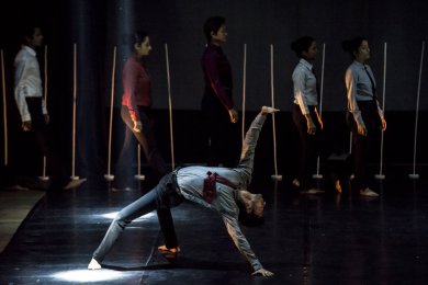 Ekalavya, presented by Rhythmosaic and Open Door in Kolkata on January 16, 2018, made a valiant effort to go out of the way and make their well-trained bevy of sixteen male and female dancers tackle the traditional parable into an inquiry into its metaphorical dimensions. Conceived by Mitul Sengupta and directed by Ronnie Shambik Ghosh, what they did is summarized in their concept note, "Ekalavya is not the re-telling of an age-old story. It is a stark, crystal-clear statement about the philosophy and the ideals symbolized by Ekalavya. The work celebrates his dedication to discipline and perfection through repeated practice and his unvanquished thirst for success. There is an Ekalavya in each one of us, negotiating life's meandering twists and turns, in the face of all odds, through loneliness and otherwise." In essence, the performance - clad in the bureaucratic shirt-and-tie apparel - used all the trappings of a well-synchronised contemporary choreography where they merely explored life's many challenges: of confrontation, of betrayal, of reconciliation, of defeats, and of the valiant effort in overcoming the obstacles. This critic would view it as a work-in-progress: yet to explore the many other dimensions of the Ekalavya myth, so rich in metaphors.