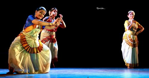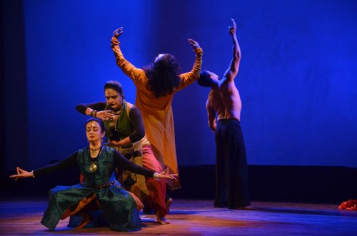 Ekayan, the first segment, was an encounter between Mohiniattam and Bharatanatyam -- from the peninsular India with sufficiently close idioms - led by Priyadarshini Ghosh and Mohana Iyer with Natyanova in Mohiniattam and Sujatha Ramalingam with Kalasrishti in Bharatanatyam. Their groups established the two forms, juxtaposing the invocatory item of each style. The performance commenced in Bharatanatyam with a prayer to Ganesha in raga Hamsadhwani and adi tala, followed by Bhramari Allarippu in tisra ekam, and Chollkettu in Mohiniattam in Ragamalika and chempada tala. The second piece was a composition penned by Maharaja Swati Tirunal in Ragamalika and rupaka tala. This was an abhinaya item depicting the eternal virahotkanthita nayika pining for union with Padmanabha. Integrating both the styles with the main abhinaya portions, it was performed by the three main artists: Priyadarshini, Mohana and Sujatha. Their finale was a Tillana, celebrating pure dance in a jugalbandi of the two styles by the combined artists of Kalasrishti and Natyanova, in raga Chenchurutti and rupaka tala. In the second segment, Nada Brahma (the sound of God), the cosmos was sought to be perceived. Nada Swarupam explored the concept of a beginning with sound symbolising creation, followed by rhythm and pure dance that emanated from sound, and explored preservation of the universe by Vishnu, and destruction and purification by Shiva. At the end, through Nada, the artiste becomes one with the universe. The production used the versatility of the two eastern classical styles of Manipuri and Odissi and included the Pung (percussion) and Manjira (cymbals) played on stage by the dancers. The admirable concept, direction and choreography were by Poushali Chatterjee for Manipuri and Arpita Venkatesh for Odissi, along with artistes of Nandanik and Malashree respectively.