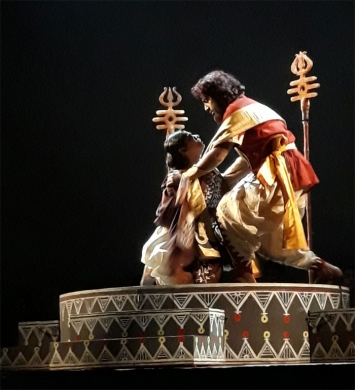 Chand Manasar Kissa (The Parable of Chand and Manasa), directed by Shubhasis Gangopadhyay and dramaturgy by Debesh Chattopadhyay, presented on March 25 by Kolkata’s well established theatre group Sansriti, followed faithfully the threads of the epic narrative, in delightful cameos of storytelling, song and dance. At the outset, Manasa was enacted with great verve by the veteran Monalisa. The story begins with the conflict of the merchant Chand Sadagar against Manasa and ends with Chand becoming an ardent devotee of Manasa. Chand is a worshipper of Shiva, but Manasa hopes to win over Chand to her worship. In collusion with her confidante Neta, the washerwoman (essayed with aplomb by Arpita Ghosh), Manasa lets loose many stratagems, to begin with, as a seductress and luring Chand to her bed. But, far from worshipping her, Chand refuses to even recognize her as a deity. Manasa takes revenge upon Chand by destroying seven of his ships at sea and killing his seven sons. The grieving Chand still refuses to capitulate. His flourishing trade comes to naught. When he and his wife Sanaka get their youngest son Lakhinder married to Behula, their full proof marriage parlour – made with iron shields -- has still a thread hole entry to allow a fatal snake bite by one of Manasa’s deadly minions. Behula, the new bride now widowed declines to accept this death and sets on a mythical voyage – with her husband’s corpse -- over full six months to the very threshold of heaven. Behula’s bewitching dance is held in a grand spectacle there and makes the gods bow to her abiding love for her husband, strength of character, indomitable courage and deep devotion. She succeeds in bringing Chand's seven sons back to life and rescuing their ships, before returning home with Lakhinder now restored to life. The captivating performance had three scoring points. First, it utilized the original verses of the folk play instead of a prose dialogue with great effect. Second, in lieu of built up sets, the play used the characters to group together forming imaginary large boats, colorful curtains to visualise marriage parlor, and a shadow play to create temporary illusions. Even the play’s flow of narrative was three-fold: by the dramatis personae, by an intervening sutradhara (a la classical plays) and by an intervening uncle-nephew duo who kept explaining the play’s contemporary significance. One only wished the last bit, especially the nephew’s sophisticated city accent and English words, could rather be avoided, leaving it to the viewers to reach their own inferences!