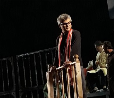 Don: Taake Bhalo Laage performed by Chetana on April 30 in Kolkata, was a most enthralling adaptation of Man of La Mancha by the thespian Arun Mukhopadhyay into a Bengali version and the best part was that it retained the original musical operatic form of the Broadway hit. Directed by Sujan Mukhopadhyay, this was refreshingly different from the run-of-the-mill theatrical forms, practiced in India because all three main characters - Don Quixote, Sancho Panza and Don's ladylove Aldonza - - were eloquent, both singing songs and delivering dialogues. This is typical, of course, of the European opera post Richard Wagner where the principal dramatis personae are actors as well as singers - unlike the pre-Wagner opera where the characters sang their heart out but never delivered dialogues. Somehow, post-Wagner musical opera did not quite warm the cockles of the heart of India theatre-goers, with very rare exceptions of Marathi and Bengali folk plays. (Remarkably enough, Rabindranath Tagore - on return from England - penned two very successful Wagnerian opera in Bengali, Valmiki Pratibha and Kaal Mrigaya in 1881 and 1882 respectively, but never went back to this precise operatic form later in his long productive life). The current adapted version follows faithfully the La Mancha presentation style right from the word 'go.' It begins with the minor poet and playwright Subhamoy Dutta, the substitute for Cervantes, hauled on charges of sedition against the State, along with his associate Satyajit Mishra (in place of Sancho Panza). The masked prisoners, interned in the cage-like barracks, bay for blood, but on wiser counsel prevailing, settle for a mock trial. Subhamoy's script for "a play within play" is enacted enthusiastically by the jail inmates, with the bespectacled Subhamoy appearing and re-appearing from time to time with almost Brechtian "alienation effect". La Mancha's cabin trunk, carrying Quixote's apparels and other theatrical bric-a-brac, also finds a place in the Kolkata adaptation. But, for some reason, the adaptation recalls throughout the original Spanish story - complete with its connotations of Quixote's "knighthood", the windmills mistaken for armed demons, the public bar mistaken for a fortress and its "resident sex-worker" Aldonza wooed by Quixote as his "gorgeous ladylove" - although these archaic symbols of the medieval West do not ring a bell for the Indian spectators. In spite of the temerity of the adaptation in not going the whole hog Indian, Don… proceeds very well on the strengths of its protagonists, namely, the histrionic prowess of Suman Mukhopadhyay as Subhamoy Dutta / Don Quixote, Nibedita Mukhopadhyay as Aldonza / Alienza and Satish Shaw as Sancho Panza / Satyajit Mishra, by both singing ecstatically their lyrics and verbalizing superbly their dialogues in the true spirit of an opera. A word must be reserved on the opera's rich musical texture, drawing liberally from flamenco, rock-n-roll and western classical music at one end and Keertan, Tappa and Rabindra sangeet at the other end, making the whole opera become an original musical tapestry - with all thanks due to the live musical support present on the proscenium - - and a sumptuous treat to the eyes and ears of the viewers.