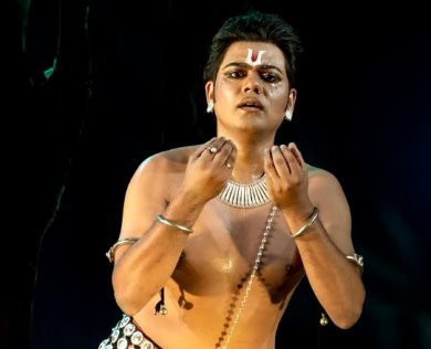Bahana presented on June 29 by the South Gurukul Society was an innovative recapitulation of this theme, although it steered clear of the anthropological speculations of the above nature. Directed by Sutapa Talukdar, the twelve deities chosen along with their vahanas were Agni - God of fire and his mount the goat; Indra - King of the gods and his mount Airavata the elephant; Pavana - god of the winds and his mount the deer; Yama -the god of death and the underworld, and his mount the buffalo; Surya - the sun god and his mounts the seven stallions. Among the later deities were Mahadeva - the god of destruction and his mount Nandi the bullock; Durga - the mighty demon killer goddess and her mount the lion; Laxmi - the goddess of wealth and her mount the owl; Saraswati - the goddess of learning and her mount the swan; Kartikeya - the god of valorous wars and his mount the peacock; Ganesha - the elephant headed god of benedictions and his mount the rodent; and the Ganga - the mother goddess of salvation and her mount the crocodile. Borrowing extensively from Sanskrit texts as sources and using one's understanding to showcase the glory of the birds and animals that is often left unheeded, Sutapa presented Bahana as inseparable loyal companions to their respective gods and goddesses - - and yet remaining largely unutilized as subjects of classical dance performances against the celebrated representation of their masters throughout the ages - - in her four part repertoire. The mounts were introduced first serving their respective godheads in a colorful choreography (barring the slight aberration that the sun god was driven by a seven stallion chariot and not six). In the second segment, the mounts were paired as twosomes and engaged in humorous repartees with each other, which seemed rather uncalled for. The choreography gathered momentum in the third section and Kelubabu's striking visualisation of chowks and bhramaris, utplavanas and mukhabhinaya were utilized with brilliant impact. The final part was overall tributes and salutations to individual deities. Music by Pt. Subhankar Banerjee was a great strength in the production, adding very well-textured melodies and rhythmic variations and was a class apart. Narration by Barun Chanda was quite well rendered, except that his repeatedly using the expression "mascot" - - that signifies person, animal or thing supposed to bring luck (usually in sporting events) instead of the more apt word "mount" - - jarred somewhat. Script by Saberi Rakshit and Sanghamitra Mukherjee was an asset in its strong Sanskrit scholarship and lyrical resonance. ![]() ![]() ![]() Ravash Ravash presented on July 4 by Sankalpa Nrityan was a variegated affair, celebrating fifteen years of that school of Odissi dance delineating skills of some seventy dancers. Conducted by young Subikash Mukherjee - initially trained by Kelubabu and later groomed under guru Kumkum Mohanty of Odissi Research Centre and guru Ratikant Mohapatra at Srijan - the choreography was marked by several compositions by those stalwarts, expanded suitably to suit the group renderings. All through, the costumes of the dancers were strikingly vivid and caught attention. After the overtures with Ganapati Vandana and Shiva Stuti, the repertoire began with Batu Nitya in raga Mohanam, with composition by Kelubabu and music by Bhubaneswar Misra. Then came another Kelubabu composition of Devi Stuti describing Ardhanariswara. This was followed by a Saraswati Stuti. Then came a series of scintillating Pallavis, in picturesque group compositions and splendid aesthetics. First was a Vasant Pallavi, bearing the stamps of Kelubabu and Bhubaneswar Misra. The second was a Megh Pallavi, in jhampak tala, bearing the handiwork of Ratikant. The third was a Desh Pallavi in ekatali, created by Kumkum Mohanty. The Pallavi trio gave way to a dramatic depiction of Nauka Vihar by Krishna and Radha on the backstage and the forestage taken up by the ecstatic gopis, dancing to Sakhi dekho re..., a composition by Banamali Das. After a group Chandan Yatra, with choreography by Ratikant, there was an elaborate ashtapadi from Gita Govinda, Lalita lavangalata parisheelana komala malaya samire..., with a Kelubabu choreography and music by Bhubaneswar Misra, in ekatali. After a brief intermission came the evening's major solo piece Chudamani Pradan by Subikash himself. Based on Tulsidas's well-known dohas (couplets) and choupais (quartets) from Ram Charit Manas and set to music by the stalwart Raghunath Panigrahi, the solo presentation took wings from the very beginning. Hanumana arriving in Lanka, his wonderment at the grandeur of Ravana's palace, his inability to locate Sita and the eventual delight to find her demure figure in the Ashoka forest were well enacted. Sita's loneliness and lamentation were followed by her sudden shock and surprise to see Hanumana. The latter's brainwave to drop the royal wedding ring of Rama before her brought an instant recognition for Rama's envoy, followed by the earnest mutual dialogue on Sita's and Rama's well-being. After Hanumana gorged some wild berries to quench hunger, Sita gave him the tiara on her head for Rama's recognition and the final leap back of Rama's envoy were all enacted by Subikash with consummate skill and panache. While Subikash followed the choreography of Ratikant - who, in his long career, danced as Hanumana many times and became almost synonymous with his idol - the striking fact was that Subikash was alternately Hanumana and Sita in his Ekaharya Abhinaya. During Ratikant's performance, either Sanjukta Panigrahi or Kumkum Mohanty used to appear as Sita. It was perhaps for the first time in Odishi's history that Subikash attempted Ekaharya Abhinaya for this famous episode, supported by a pleasant backdrop of Ashoka tree and forest to add theatricality. Precisely because of the use of a dramatic set, it becomes then necessary to define the imaginary space for Sita vis-à-vis the spac