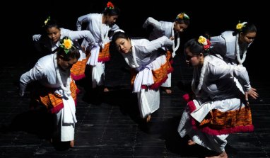 ![]() e-mail: ukb7@rediffmail.com Seven Nymphs from Manipur Photos courtesy: Chorus Repertory January 21, 2019 Silhouetted in the rear horizon, the angelic nymphs are painted still, in white gossamer chiffon. Then, in ever slow steps, they descend as though from heaven to the soiled earth in front stage, beginning their journey through the muddle of anguish and sorrow, the quivers of joy and ecstasy. Edging along and deciphering on their journey many wayward challenges through their rituals and traditions, they carry the seeds of human identity and culture -- inherited from the very distant ancestors - and move through the past, present and future, negotiating peace of sky, peace of earth, peace of water, peace of trees and peace of man. The nymphs are flying towards 22nd century . . .