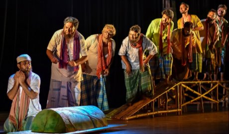 ![]() e-mail: ukb7@rediffmail.com Unrequited Love, Unrelenting bigotry February 18, 2019 Nasika Puran Cyrano de Bergerac, the famous 1897 play by the dramatist-poet Edmond Rostand, is cast in the mould of the proverbial parable of 'Beauty and the Beast', except that the Beast here uses the vision of a handsome, yet dumb male upfront - as a friend to support -- to entice the incurably romantically-minded Beauty through recitations and verses. Only at the very end, the Beauty realises that the Beast was her destined lover, Cyrano. Rostand's memorable dialogue alludes to the final recognition: The Beauty says: I love you. And the Beast's ugliness falls like a magic veil... The widely-performed French play -- credited with a Cyrano played on celluloid by the legendary hero Gerard Depardieu - was known to have been broadly modelled on a real-life noble man Cyrano de Bergerac, a 17th century elegant poet and philosopher, yet thoroughly spoilt and licentious, but Rostand play's fictionalisation elevates itself to a superb ménage a trois. Cyrano, a cadet (nobleman serving as a soldier) in the French Army, is a brash, strong-willed man of many talents. In addition to being a remarkable duellist, he is a gifted, delightful poet and is also a musician. He has, however, an inordinately long nose, which causes him to intensive bouts of self-doubt. This hesitation prevents him from expressing his love for his distant cousin, the beautiful and intellectual Roxanne, as he believes that his ugliness would prevent him the "dream of being loved by even an ugly woman." Till his last breath, Cyrano retains his panache, his typical flamboyance of self-negating style that he gifts to his society and to literature. ![]() ![]() Nasika Puran (The Saga of Nose), presented on January 25 by Minerva Repertory Theatre, was a Bengali adaptation by the astute thespian Ashok Mukherjee, with a locale in 7th century Bengal at the historical time of Shashanka Deva, with wars and turmoil of the period. Directed by the emerging thespian Biplab Banerjee, the play faithfully follows the original storyline: the noisy introduction of the multiple dramatis personae; the festive scenes during a royal coronation; the song-and-dance interludes of the drama about to be staged for the nonce; the very athletic Cadet descending acrobatically from an overhanging rope (and also performing his last act of bravado from the rope); and the generally confused battle scenes played out with blast and thunder. The second half virtually takes off flyingly on the love triangle with suspenseful acting and confrontations among the rivals. A fourth love interest - also there in the Rostand original - is the bumptious commander pursuing the pretty princess and generally making a mess of things. The fifth act - the temple monastery of the celibate women where the dejected princess now lives as a widowed recluse - is poignantly crafted, with the final denouement well enacted. In fact, it did seem that the first half was somewhat symptomatic of a cluttered up melee of characters, capable of some editing. The set design and lighting was of top quality and the youthful Repertory actors rose very well to their acting ambitions. Lal Salu Syed Waliullah (1922 - 1971) was a Bangladeshi novelist, short-story writer and playwright, whose 1948 award-winning debut novel, Lal Salu (translated by the author, calling his English version as 'Tree without Roots'), castigated fundamentalism and religious bigotry in Islam - as perpetuated by orthodox self-seekers - with whiplash sarcasm. Made into a memorable film, Lal Salu -- by Bangladesh's prime cineaste, Tanvil Mokammel -- went on to win many laurels. The novel essentially tells the story of Majid, an indigent pseudo-cleric from a devout Muslim background, who arrives at a remote village and shrewdly declares an old derelict grave to be the Majaar (graveyard) of a Peer (saint), covers it with the traditional red cloth used for mausoleums, and establishes his stronghold on the life of the simple, god-fearing people using the reflected power on him of the supposed saint. The novel shows his ascent to power and social prosperity, struggle with other religious figures trying to establish dominance, the undercurrent of pagan ideas among the people, and finally his own weaknesses that exposes him at the end. Lal Salu (Ceremonial Red Cloth), performed on February 8 by 'Prachya', was a love's labour bringing out the full range of practices and rituals that are called upon to fool the believing masses in any religion. Spearheaded by the talented director Abanti Chakraborty, the powerful play builds up - brick by brick - the marginalised village community who are hardly very religious, let alone communal, and believe in earning their daily bread through back-breaking toil and hard labour. Such a milieu is ideally suited for exploitation to Majid Mian, the cunning, power-seeking religious bigot, who is bent upon establishing himself as a Peer.