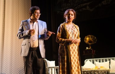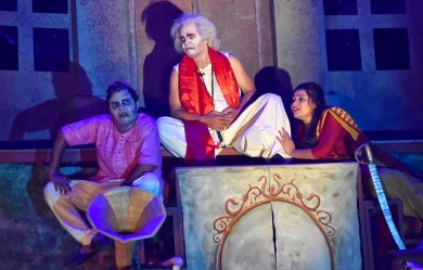 Bhunibabur Chandni premiered on July 1 by 'Curtain Call' and imaginatively directed by Tirthankar Chattopadhyay was a true adaptation by Sharmila Maitra, recalling the ghostly settings now in Kanter Bill of Bengal, with a BDO family moving in with raucous youngsters and the ghost as a famous Jatra player of yesteryears, accompanied by his make-up man. There is little explanation how even a successful actor could own such a huge, though decrepit, mansion and that too, replicating a Gothic castle from the West. All the characters use stylized acting, barring the BDO's compassionate daughter Anuprerana (Rajyasre Malakrar) who inexplicably adopts completely natural style. The teamwork is just about adequate. Goutam Halder, who essays the pivotal role of the ghost, reduces it almost to frivolous proportions. Now, this critic would like to hail the highly gifted Goutam as the 'Peter Sellers of Bengal' for, like the versatile English actor, known for his impersonating skills seen in Lolita (1962), Pink Panther (1963), Dr. Strangelove (1964), etc., Goutam has shown immense flair to portray characters using different accents and guises, and with contrasting temperaments and styles in plays like Feriwalar Mrityu, Gotraheen, Meghnad Badh Kavya, Sujan Bediyar Ghat, Mudra Rakshash, Mymensingher Geetika, et al. Of late, his comical actions in Return Ticket and in the current play, however, show scant regard to flesh out the characters with ample thoughts before proceeding to improvisation, and not turning them into clowns! Dyuti Ghosh Halder, a highly talented actor - last seen to advantage in Matir Gadi Mrichhakatik - appears here as the visiting BDO's wife, with totally avoidable gesticulations. She, too, beware! ![]() Dr. Utpal K Banerjee is a scholar-commentator on performing arts over last four decades. He has authored 23 books on Indian art and culture, and 10 on Tagore studies. He served IGNCA as National Project Director, was a Tagore Research Scholar and is recipient of Padma Shri. Post your comments Please provide your name and email id when you use the Anonymous profile in the blog to post a comment. All appropriate comments posted with name & email id in the blog will also be featured in the site. |