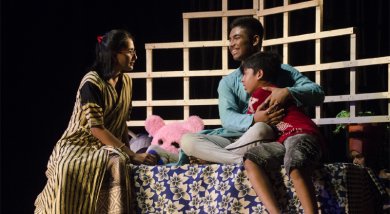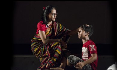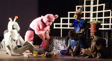 ![]() e-mail: ukb7@rediffmail.com Other theatres - symbolic, magic November 6, 2019 In the ancient Greek drama as well as in the great Shakespearean theatre it inspired, usually a single transition takes place in the performance that is crucial for you as the viewer: transition from "Here and Now" of your mundane present to the "There and Then" of the dramatic events. The theatre is palpable behind the "invisible fourth wall"; the flesh-and-blood actors deliver their dialogue; there is a reasonable unity of time and space; and the sequence of events takes you from the formulation of a problem right up to its solution. But there can also be an alternative theatre of the kind conceived by Sergei Obraztsov of Russia, for instance, which may permit multiple transitions from the "Here and Now" to the "There and Then". In their world that calls -from the beginning -- for suspension of your disbelief, symbols and allegories are galore; the actors can be physical characters and/or puppets who speak the puppeteer's lingo and performing dolls; the unity of time and space goes for a toss; and the sequence of events can be equally topsy-turvy. Two excellent specimens of the latter variety were witnessed recently by this critic. Bir Purush (The Brave-heart) Photos courtesy: Shilpisangha Presented on October 23 by 'Shilpisangha' with child actors all this side of 18 years, the play was crafted around Tagore's eponymous poem that has the veneer of a boy's fantasy and is built around the core of his abiding love for mother. The child has an imaginary encounter with the blood and gore of dacoity, when his mother had undertaken a perilous journey in a palanquin and the boy, on horseback, had acted out as her bodyguard. Lost in a no-man's land, they are attacked by ferocious men with swords and shields, and are saved only by the boy's fierce fight, vanquishing all the marauders. The tired, yet jubilant boy, taken for dead by everybody, returns -- hold your breath! - to his mother's lap for receiving accolade.