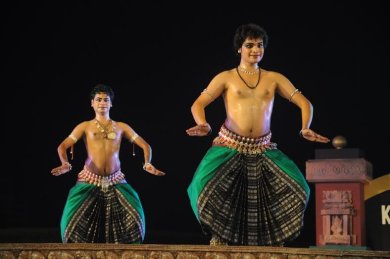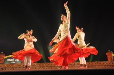 Konark Dance Festival 2014 - Dr. Sunil Kothari e-mail: sunilkothari1933@gmail.com Photos: Odisha Tourism December 14, 2014 From 1st till 5th December, Konark wears a festive look. The road leading to Konark temple is ablaze with colourful lights, colourful umbrellas, lamp shades, trees glittering with creepers of lights and the sky shines with near full moon. Various large hoardings and display boards with digitalized enlarged images of dancers featured in this festival and previous years are mounted at various points on the walls of Yatri Niwas. The stage is a pucca built one with green rooms in the basement. The multi-tier seating open air theatre faces the impressive tower of Konark temple (now wrapped in wooden scaffoldings). The Khajuraho Dance Festival is held against the backdrop of Chitragupta temple on a permanent stage, but the Konark Dance Festival does not have that proximity to the temple. It is essentially organized for group dances and the large sprawling stage is ideally suited for that. This year, if I understood correctly from senior Odissi exponent Kum Kum Mohanty, it is the 25th year of Konark Dance Festival. If so, the organizers missed the celebration of its silver jubilee. The sleepy Konark village comes to life from 1st to 5th December every year since the Department of Tourism and Culture has taken over organizing the festival. The dates are fixed and well advertised, the festival has its own website, announcements are made in the print media in advance and also on television. A festive mood prevails. The traditional tunes of Odiya songs are played on mahuri, reed instruments, accompanied by the drums, and the microphones blare filmy songs. Yatri Niwas lawns are painted green and yellow. It is the focal point as participating artists are accommodated there, and the Government officials come there for tea before going to the open air theatre. The festival starts punctually at 6pm and is telecast live on DD Bharati. By evening when the sun sets, on both sides of the lane leading to the festival venue, several stalls are lined up, selling knick knacks, traditional Orissa saris, colourful umbrellas and lamp shades from Pipli village known for the handicrafts, toys, fast food, medicines, books etc. For more than a kilometre everything is ablaze with lights. People throng to the venue, coming by cars and special buses from Bhubaneswar. At Yatri Niwas, the traditional dummy horse dances are performed daily before the dance festival starts. A similar tradition called Kachhi Ghodi exists in Rajasthan. Well known compere Sadhana Srivastava from New Delhi along with Mrityunjay Rath, a professor of English literature well versed in Odiya language, introduce the program. While Sadhana is a thorough professional with an enviable track record of more than three decades, Mrityunjay Rath casts a spell with his poetic Odiya language. Over the years, a professional approach to these announcements has been developed, which is a bonus for the festival. Performances This year being the year for traditional preparations for Navakalevar, the new idols of Lord Jagannath, Subhadra and Balabhadra, the theme was aptly selected by Guru Kelucharan Mohapatra Odissi Dance Centre and University of Culture for group dances dwelling upon the story of how these idols were created. When the King out of curiosity opened the doors of the temple, against the warning that they must not be opened, the sculptor had disappeared and the idols have been since then worshipped as we see them today. There were interesting incidents like when the Yadavas get drunk and kill each other, Lord Krishna is shot by a hunter, mistaking him as deer resting under a tree, the Pandavas are called, Krishna embraces Arjuna and takes away his arts and the dead body of Krishna is set floating on waters. One did not know of this version and it was delightful to learn it. The dancers of both the institutions and the musicians worked as a team. It was heartening to see an appropriate theme was selected which had wide appeal. ![]() Navakalevar ![]() Bhavachakra Kathak dancer Shovana Narayan and her troupe chose to present Bhavachakra. Chakra stands for wheel and the dancer associated it with the chariot wheel of Konark. The cyclic existence of life, samsara, was interpreted as a division into four parts. First one was an ode to Surya, the presiding deity of Konark. The girls and boys performed spiritedly with pirouettes, suggesting also the circular movements. Sun provides energy, preservation, dispels darkness and sustains life. Though abstract in its concept, the energetic execution by the troupe engaged the attention of the audience. In Sringara, Shovana selected Amir Khusro’s compositions: Khusro baji prem ki , main khelun pi ke sang, jit gayi to jit gayi, piya aur har gayi to piya ke sang, tan mero, man mero dau bhaye ek rang - I shall play the game with my beloved, and if I win shall be with beloved and if defeated even then shall be with him. The power of the Goddess, Devi, Shakti, her dance in lasya contrasted with Tandava Ullasa, the dance of Lord Shiva, its association with shrishti (creation), sthiti (preservation), samhara (destruction), tirobhava (illusion) and anugraha (release) were epitomised in movement as eternal energy. It gave scope to the male dancers to display vigour through tatkar, footwork, an inevitable element in Kathak. It was employed imaginatively. Shovana wove in Kathak Chaturanga, four aspects of a recited verse, a sung verse, a pure rhythmic and a melodic composition. When I listened to Main nir bhari dukh ke badari (I am a cloud full of waters of unhappiness), a rather sad song of the gathering of clouds, I asked Shovana later why it started on a sad note. She explained that the anticipated joyous showers, as in the following Nabh ke nava ang bun ke dukul malin chhaya, ghanan ghanana barse megha, papiha bole piyu piyu, there was a song of expectancy of hope as in the following kavit: mera pad pad