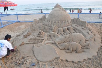 This year sand artists from abroad had arrived well in advance to participate. Besides the sand sculpture of Navakalevar, there were themes of awareness of Aids and physically challenged. The artists were provided all facilities for creating their sand art. The colourful umbrellas and chairs were placed on the beach, posters were displayed, the Padma Shri awardee Odiya artist Sudarshan Pattnaik’s participation in Spain, USA and other European countries was displayed near the enclosures on the beach. I saw on DD Bharati, an interview with sand artists who threw lot of light on different types of sands in different countries and how sand sculptures were made. When I went to see morning sunrise, I saw a large crowd witnessing the sunrise and then moving towards the rows of sand sculptures. The entire atmosphere was joyous. Odiya Jatra Around midnight a popular Jatra party stages Jatra for five nights. That crowd is entirely different, but fills the enclosure paying ticket rates up to Rs 500 and the shows are sold out. It was fascinating to watch. Before the show starts, the microphones blare with Anup Jalota’s songs of Meera, Hanuman Chalisa, Tulasi Ramayana. And when the show begins, the prayer Jagannatha swami nayan patha gami bhavatu me is performed by actors imitating Odissi dance. Then appear bow tie clad ‘suited booted’ chap holding mike in his hand with mile long wire and he speaks in corrupt Hindi and mix of Urdu, something about the beauty of husna, pari, about scantily dressed women, also holding mike in hand and responding to the man, coming close to the enclosure of the arena where they perform, and the audience shouts lewd remarks to which the female blows kisses. There were several songs from films, acrobatic feats and it looked to me endless divertissement before the main play started. Enough was enough for me, having tasted the flavour of popular entertainment along with classical dance festival, and I walked away silently to Yatri Niwas. The near full moon shone brilliantly in the sky. The month of December with nip in the air was indeed the right time for the five day festival. ![]() Dr. Sunil Kothari is a dance historian, scholar, author and a renowned dance critic. He is Vice President of World Dance Alliance Asia Pacific India chapter, based in New Delhi. He is honored by the President of India with Padma Shri, Sangeet Natak Akademi award and Senior Critic Award from Dance Critics Association, NYC. He is a regular contributor to www.narthaki.com, the roving critic for monthly magazine Sruti and is a contributing editor of Nartanam for the past 12 years. Response * It has taken me some time to read and absorb your excellent review of the Konark Dance Festival 2014. The writing is like an archetype of what should be included in a complete review. Setting the physical scene, the social ambiance, the performances and the historical contexts are essential elements, as you demonstrated in your review. Thank goodness for Narthaki, where room is given to say something of substance, instead of a 200-word clip. - Janaki Patrik (Jan 8, 2015) Post your comments Pl provide your name and email id along with your comment. All appropriate comments posted with name and email id in the blog will also be featured in the site. |