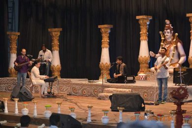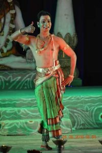 Young male dancer G. Ravi from Chandranagar, performed Kuchipudi Tarangam, dancing on brass plate to Marakatamanimaya chela. It was impressive. And he seemed to have good stamina and breath control. He needs to develop abhinaya to highlight dramatic element of Kuchipudi. ![]() Jhinook Mukherjee Sinha ![]() Dipjyoti and Dipankar Sattriya dancers Dipjyoti and Dipankar in their duet displayed definite Sattriya style. Currently they are studying under Ramakrishna Talukdar and have therefore developed art of stage presentation. Last I had seen them at Jiwan Pani's memorial dance festival in Delhi. From that time within a year they have acquired more skill and despite the speed not much seen in Sattriya exposition, they looked graceful and revealed the basic movements of Sattriya. Besides Prarthana, Bargeet of Sankaradev, their Dashavatara in Brajbuli was in traditional Sattriya style to the text which is based on Gita Govinda. The incarnations were enacted one after another briefly but suggestively. As happens for Narasimha and Vamana incarnations, the audiences everywhere understand the visuals and applaud. The dancers also created four armed god Vishnu's image. It gave the flavour of Sattriya music and variation in hastas different from Abhinayadarapana. One of the dancers is too slim and needs to put on weight so both would look pleasant in a duet. Sandip Malik, a disciple of Shreelekha Mukhejee, in Kathak group choreography, showed his imaginative approach as a devotee praising Lord Shiva as Hara and Hari, Lord Krishna. He dovetailed lots of traditional Kathak technique of both Jaipur and Lucknow gharana. His enthusiastic troupe has well trained male and female dancers. While describing the epithets of Lord Shiva, he laid stress on tandava and while praising Lord Krishna he laid stress on lasya. Also while enacting Krishna's deeds, he brought in tala rasaka, garba, playing with claps and 'gof ' raas, using like Maypole, coloured long garlands hanging and dancers holding them dancing in circle. The Jaipur technique was sound as was graceful Lucknow training. Taking inspiration from Birju Maharaj, he also used mere clapping and sound of ankle bells which looked refreshing. But his over enthusiasm took better of him. However, the overall choreographic approach was pleasant. That he is able to manage two groups in a seamless manner was his plus point. He would do well to edit his choreography from excessive technical display. As usual the group won rounds of applause for their tatkar, footwork and chakkars. ![]() Sandip Malik's group ![]() Ullal The jugalbandi between Yakshagana and Bharatanatyam was perhaps included for novelty. The idea was convincing with sequence of king Kansa in a nightmare seeing Krishna everywhere and trying to kill him and not finding him on waking up. In finale Krishna vanquishes him. In this duet also dancer playing Krishna was too thin whereas on account of costumes in Yakshagana the artist playing demon king Kansa looked larger than life. Visually Krishna cut a sorry figure. Both the artists need to work out a strategy to avoid this discrepancy. Sujata Mohapatra in Odissi presented Durga stuti rendered melodiously by Debasish Sarkar. Guru Kelucharan Mohapatra's choreography invoking Goddess Durga both in her beatific and demonic forms creates visuals of the Goddess with epithets like face like full moon and two eyes decorate it with divinity. Durga is sulochana, with beautiful eyes, pinnota payodhara, with full rounded breasts, holds in arms sudarshan chakra and other weapons, she is Mahashakti and with pointed arrows kills Mahishasura.The illusion of ten arms springing holding weapons is complete with Sujata creating an aura around her. In one word Goddess incarnate. She is a gifted dancer who succeeds in breathing life into character she depicts. She chose to present Ramayana episodes of golden deer, in her typical signature jumps, Ravana kidnapping Sita, Jatayu fighting with Ravana, Rama's blessing him when he dies and leaving in search of Sita-everything was enacted with intense abhinaya, touching chords of our heart. It is true as Sanskrit saying says the appeal of Ramayana will continue for mankind as long as there are oceans and mountains. Sujata's Odissi was the highlight of the evening, with dramatic lighting by Jaydev. ![]() Sujata Mohapatra ![]() Music group The finale with musicians Sourendra, Soumyen and accompanists kept audience in thrall. Their rendering songs to Khamaj raga preferred by Sachin Deb Barman with film songs enthused audience to hum those familiar songs with them. Both musicians believe in educating audiences through these songs about classical ragas. Yaman, Bhairavi and Tillana by Balamuralikrishna were so thrilling that Tillana is known in their repertoire as Thrillana! And it was thrilling! Dhrupad, raga Shri to Tagore's song had great appeal to predominantly Bengali audience. Since the programme extended too long, despite public demand they concluded their performance, keeping audience hungry for next show. On second day I attended in the morning dance competition for young dancers. Since we had arrived by car from Kolkata previous day by 4pm we had not seen the competition of Kathak, Odissi and Kuchipudi. We only saw young dancers competing in Bharatanatyam. From Sanitiniketan, Kathakali guru and retired Professor T.Sankaranarayanan and Manipuri Guru Jitendra Singh were invited and also Sujata Ramalingam for Bharatanatyam. She is a former dancer from Chandralekha's troupe. The standard was encouraging. Dancers came from Asansol, Bardhaman, Kolkata and few from Durgapur. Organizers give three prizes for first, second and third positions and also invite them to perform next year. This is a welcome activity in a city like Durgapur. . The evening opened with group dance in Mohiniattam, with Swarnadeepa and her disciples. Swarnadeepa has a striking stage presence. Her movements are graceful and she follows Kerala Kalamandalam style. Pr