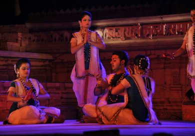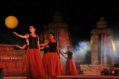 ![]() e-mail: sunilkothari1933@gmail.com Festival of Festivals: 43rd year of Khajuraho Dance Festival - 1 Photos: Vijay Rohatgi March 4, 2017 I know of no other dance festival in India which has continuously lasted for more than forty two years. This is the forty third year of Khajuraho Dance Festival (Feb 20-26) with extended art activities transforming the venue into a multi-art event, engaging cross section of visitors to Khajuraho, be they tourists from within India and abroad, performing artists, painters, sculptors, litterateurs, film buffs, photographers, musicians, event managers, bureaucrats, dance critics, or common men who out of sheer curiosity walk into the grounds where for seven days from ten in the morning till ten in the night there is enough for each one to savour, relish. ![]() Khandarya Mahadeo temple Having been associated with the festival from early years, I see its growth from mere presentation of the dance forms to dialogues with dancers, art historians, critics, thinkers, film makers, theatre workers, painters, photographers and from this year beginning a new series of interacting with neighbouring countries, beyond borders, drawing attention to interconnectedness, sharing common traditions, that transcend gender, caste, religion and bring to one an awareness of human quality but also universal truth, offer space to reflect and elevate one through art to a higher level not only of enjoyment but also to involve and care and concern for people. I have been attending the festival again since last three years and am delighted to share with readers the magic spell the festival is casting with these added activities. I have shared with a team of people and in particular Rahul Rastogiji, along with Chinmayji, their vision which with Rahulji's natural leadership quality and ability to galvanize his colleagues and convince the government officers to raise the bar of the festival. Right from turning the ground in to a festival area, where workshops with crafts people, who mould shapes from earth into objects of art, earthen wares, the weavers that weave magic with warp and weft, their looms, the boundless variety of handloom, handicraft, textiles from different parts of the country, the exhibition Art Mart of painters mainly from Madhya Pradesh, sculptors, venue for Kalavarta, also sharing in the afternoon screening of documentary films not generally seen, but carefully selected, involving actor Raja Bundela, and at a special enclosure Nepathya where each year focusing on a particular state and its dance heritage with exhibition of costumes, masks, objects of rituals, floor paintings, designs, and performances between 6 and 7pm and then leading audiences to main event of dance with the backdrop of Chitragupta temple metamorphosing the ambience transporting onlookers to a dream world. Stars shooting in all directions, crescent moon resting like ardha Chandra on jata of Lord Shiva, appearing in sky above, resting on shikhara of the temple prepare the audience to relish the classical dance forms with enchanting music. To weave around the main event of dance, all that I have mentioned above is fascinating. And when the dancer appears in solo from the side to strains of music its appeal visually is stunning. The temple provides a context, a setting for unfolding of mythological stories, which dancer enacts, stringing the chords and evoking archetypal memories. Be it a prayer to Sun God, or Ganesha or Lord Shiva, the audience gets ready to receive it in moments of bliss. What the rhetoricians call Rasa, the relish is experienced with this god given setting of Khajuraho temples. 2nd Day I arrived a day late and therefore missed the performances on first day. On second day from Gurugram, (Gudaon) Odissi exponent Shagun Bhutani began with Gangataranga choreographic work of Guru Mayadhar Raut, dwelling upon the attributes of Lord Shiva who had received Ganga in his jata and also his beloved Gauri on his left side, Gauri nirantara vibhushita vamabhage. Shagun moved her arms like waves of water to create the image of Ganga gracefully. ![]() Shagun Bhutani
