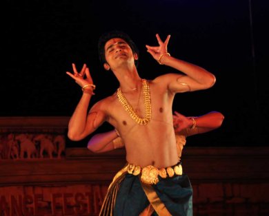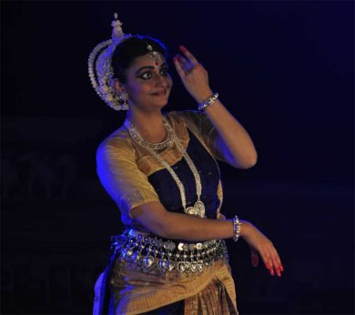 From Bangladesh, Amit Chowdhury, a young bright Bharatanatyam dancer trained by Rajdeep Banerjee (Kolkata) and Kirti Ramgopal (Bangalore) has also taken lessons from Guru C.V. Chandrasekhar. He has acquired proficiency in the form and performs with elan and confidence bringing out the geometrical beauty of the dance form. In Nrityarpan, he and his ensemble of Kalpataru, with female dancers Zuairiyah Mouli, Shammi Akter, Tasneenanha, Shuddha Srimoyi Das and Parisa Omar displayed commendable grasp of Bharatanatyam. Right from Pushpanjali in ragam Nattai and adi tala, Natesha Kavutvam in praise of Ganesha and Lord Shiva and followed by Lalgudi Jayaraman's varnam "Devaadhideva" in Shanmukhapriya ragam and Talamalika, the dancers displayed uniform technique, neat and clean lines. In the varnam, Amit wove sanchari of Lord Vishnu taking away the jewel from the foot of Bhrigu rishi when he struck a kick on chest of Lord Vishnu and realised that Vishnu is the ultimate god, episode of Gajendra moksha and Dashavatara showing his understanding of the sahitya. His teermanams were perfect. The nritta element embellished the presentation alternating with expressional aspect. With Adyanjali in Ragamalika and Talamalika, describing forms of Parvati, Lakshmi, Saraswati, Katyayini, Kalyani, Bhavani by female dancers, followed by tillana in Purvi the ensemble showed how well they have imbibed the spirit of Bharatanatyam. As a choreographer Amit also showed his imaginative approach and division of space and also groupings. It hardly mattered that the practitioners are Bangladeshi Muslims. Their performance transcended the barriers. The dynamic dancing duo from Delhi, Abhimanyu and Vidha Lal took to the stage presenting their vigorous Kathak. Trained by Geetanjali Lal, both have mastered the form and project the salient features of Jaipur gharana. Prayer in praise of Hari and Hara, describing their iconographic forms, in nritta, Abhimanyu displayed in druta laya the aroha and avaroha, with authority, executing footwork in ascending and descending order, in an astounding manner. He and Vidha performed nritta aspect complementing each other and with their scintillating footwork, graceful movements and recitation won rounds of applause from audience establishing a rapport. Their angasanchalan was neat. Vidha's abhinaya number "Gagari mori nahi bharan det," Krishna's pranks, not allowing Gopi to fill her pitcher, stealing her clothes when she is bathing, breaking pots and holding her arm were performed with suggestive gestures and appropriate bhavas. The finale inviting audience to participate in keeping tala, together saat and saath saath, they won over the audience with their polished performance. The team of musicians gave them excellent support. Yogesh Gangani (tabla), Imran Khan (vocal), Salman Khan (pakhavaj) and Salim Khan (sitar) enhanced the appeal of performance. ![]() Vidha Lal and Abhimanyu Lal ![]() Jyotsna Jagannathan Trained by gifted guru A. Lakshman, Jyotsna Jagannathan from Bangalore gave a delectable Bharatanatyam performance. Currently she is receiving guidance from Malavika Sarukkai and is exploring fresh sense of expression. In abhinaya she has received lessons from Bragha Bessell. From the young generation of Bharatanatyam dancers, Jyotsna has been receiving acclaim for her dancing. Opening with Mallari in Gambhiranattai and adi tala, choreographed by Malavika Sarukkai, Jyotsna performed this ritual number which used to be performed in temples with clear lines which looked aesthetically pleasing. Earlier it was from the Nadaswaram parampara. The playing of drums, receiving the lord in palanquin images were created artistically. In "Theruvil Varano" in ragam Khamas and tala adi, Jyotsna registered the various bhavas of expectancy, delay in arrival of procession. Her desire to have glimpse of the lord found felicitous expression. Decorating herself, preparing, watching from window, waiting at the gate et al were reflective of her inner emotions. When the procession moved and she had the glimpse of the lord astride Nandi she was full of joy. Jyotsna enacted the feelings in a telling manner. Like other dancers, Jyotsna too presented Ardhanarishwara to the music composed by K. Hari Prasad in Ragamalika and adi tala. Sankaracharya's description of Lord Shiva and Parvati with Sanskrit poetry "Champey Gaurardhra" for Parvati and Shiva's body smeared with ash, Parvati having golden anklets, Shiva's serpents as anklets all were performed with skill and imagination. Jyotsna often placed two palms together near her face suggesting the ardhanarishwara form. Jyotsna has good sense of space and her nritta is chiselled. Her Bharatanatyam performance was brief and enjoyable. Like her contemporaries she is going places and carving her own niche in Bharatanatyam arena. The musical accompaniment had nattuvangam by S. Srilatha, vocal by Raghavan Manian, mridangam by Ramesh Babu and flute by G. Raghuraman. They all are versatile accompanists and their accompaniment embellished Jyotsna's performance. ![]() Gaurie Dwivedi