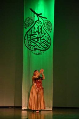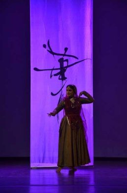 Parwati in her choreographer's note mentions: "I have titled it as Varnajaa. It is a solo exposition in Kathak - expression through Sound, Idea, and inspiration through Form. I have drawn inspiration for calligraphic ideas and attempted to display the possibilities of spontaneous images in space and time, and to create calligraphic patterns. Forms emerge from 'Naad' and 'Varna' making an aesthetic and spiritual experience. Cadences of rhythmic and gestural phrases in dance create vivid images of Calligrams that seek to explore the narrative and symbolic." This helped us to enter into the innovations Parwati has undertaken specifically for Varnajaa, dance delineations on ancient Indian, Arabic, Chinese and Japanese calligraphy. Calligraphy has a quality of spontaneity. So has dance also. The finished product is fluid and random, but each part, even a single stroke is choreographed, intentionally made. Fluid lines seem to mimic the energy and appearance of nature. The constructed experience is no less than a natural one. Each word within a finished piece of calligraphy is self-contained, an independent spatial experience. Parwati spoke about space as a static condition, whereas 'spacing' is an active process. Especially, Indian aesthetics practices deliberately make gaps. Spacing is a liberating act because it breaks the convention of having everything 'aligned'. If these were only thoughts, it would not have made such an impact. But to see these ideas get articulated in dance was for me fantastic. One, for its sheer novelty, moving away from the usual 'chhed chhad,' Krishna teasing Gopis theme. Here was a theme which has not been explored with such deep understanding. And it evoked in us curiosity of how Parwati would translate it into dance.