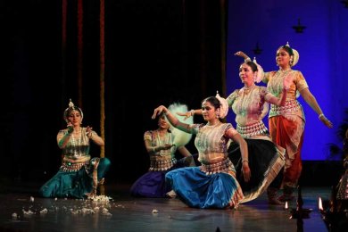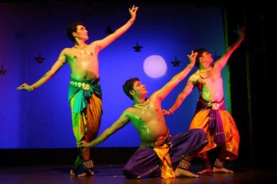 ![]() e-mail: sunilkothari1933@gmail.com Rasa Rangini Photos courtesy: Debnrutyam August 10, 2017 Odissi dancer Debasish Pattnaik, a disciple of Guru Durgacharan Ranbir, has moved to Bangalore from Rourkela, establishing Debnrutyam Studio giving training in Odissi to young aspirants. It must be said to the credit of Bangaloreans that they have welcomed Odissi dance form besides Bharatanatyam and Kathak with enthusiasm. Debasish is enterprising. He is maintaining headquarters of Debnrutyam at Rourkela, has established branches at Kochi and is collaborating with dance institutions in Malaysia, Vietnam, Japan, Colombia, Russia and the US. Today, young dancers, with more than 15 years experience, wide travels across various countries, offering workshops, finding disciples from different nationalities anxious to learn Odissi have managed to overcome financial constraints and with the help of local patrons launch branches offering training in Odissi. It requires managerial skills and support from patrons interested in dance. That Debasish has succeeded in receiving support of a large number of patrons, including local Odiya community from Bangalore and established dancers of different forms, was obvious as one attended his first Rasa Rangini 2017 festival, featuring Kuchipudi exponent Vyjayanthi Kashi, her daughter Prateesha and troupe, Sharmila Mukerjee with her Sanjali dancers and Sathyanarayana Raju's three brilliant male dancers along with Debasish's own recital with Russian dancer Elena Kryaseva, Sreelekha Sunil and Shreekanth Kumar Dash. The Seva Sadan Auditorium saw considerable organized effort, right from the announcements to the honouring of the guests, gurus, and patrons to the polished performances not only of his own but also of established dancers without undue delays. Sound training under Guru Durgacharan Ranbir was evident from the very first prayer Jaya Bhagavati Devi Namo Varada of Sage Vyasa, composed by Durgacharan to the music by Sukant Kumar Kundu, rhythm by Dhaneswar Swain and choreographed by Debasish, tailored for the group using the sculptureque images. Extolling Devi's benevolent form, dancers impersonated the goddess, male dancers turning into devotees, Elena as goddess and other female dancer taking other roles, vividly creating tableaux with arresting visuals. In Bajrakanti pallavi in a duet with Elena, Debasish explored mirror images in nritta, sometimes like jugalbandi, one performing and the other responding but with unmistakable stamp of Debaprasad bani, Debasish executing movements with perfection as a male, to the beautiful female dancer Elena. Both the numbers were well executed. Debasish has a good stage presence which is further enhanced by good technique. ![]() Debasish Pattnaik & group ![]() Vyjayanthi Kashi & group Vyjayanthi Kashi in her 'Kanyakumari' dance-drama dwelt upon the mythological story of Kanyakumari, who was born to kill Banasura. When she was born with incomparable beauty, Lord Shiva was enamored and wanted to marry her. Sage Narada had to avert that cleverly as it was announced that when the rooster would speak, the muhurta of marriage would take place. The sun was covered and Kanyakumari on hearing the heralding of morning by rooster, moved to welcome Lord Shiva, but she was deceived. With aakashvani she was consoled that she was to vanquish demon Banasura. She resigns to her fate and kills the demon in a combat. Vyjayanthi in her role of Kanyakumari employed all her dramatic power to bring the character alive, with the sakhis preparing her for her wedding with the Lord. The Kuchipudi form with its catchy rhythm and lilting bobbing up and down movements was seen in full measure. The choreography kept the audience glued to their seats as the episodes followed in quick succession. In keeping with her reputation, the entire troupe danced gracefully. It was gripping from the word go. Sharmila Mukerjee's group choreography of Pallavi in Charukeshi with six female and one male dancer, moved smoothly establishing Kelucharan bani with its graceful movements. Sharmila used one passage of nayika decorating herself, in the other the three dancers playing upon mardala and cymbals and created visuals that stood out in Odissi idiom. Her Ganga with Shankaracharya's composition in Bhatiali raga has been often presented interweaving few episodes of the life of Ganga, her being caught in the matted locks of Lord Shiva and she as Shankaramauliviharini, and as Bhagirathi, Sharmila has employed appropriate movements for the flow. The finale is impressive with dancers holding lamps in hands in descending order of Ganga flowing, winning applause from audience for impressive visual. ![]() Sharmila Mukerjee & group ![]() Sathyanarayana Raju's disciples The evening concluded with Yogesh Kumar, Madhuchandra and Rancy Suhas, three brilliant Bharatanatyam male dancers trained by Sathyanarayana Raju. He has trained them so well that one often had a glimpse of Sathyanarayana's impress in their moves. Oothukadu Venkatasubbaier's stuti saw them in perfect form, bringing out the clean diagonal geometrical lines of Bharatanatyam, Guru Narmada's choreography executed faithfully. Shankaracharya's Shivapanchakshara stuti rendered melodiously by O.S. Arun, gave the three of them enough scope to show their vigorous nritta. The favourite Nagendraharaya, with 'makara' Om Namah Shivaya refrain reinforced the devotion. The synchronization of movements stood out in their well rehearsed presentation. Sancharis for describing Lord Shiva as Nilakantha were well enacted. The finale with Purandaradasa's devarnama dwelt upon Krishna's beauty and praise, familiar to Kannadiga audiences. The trio did justice in performing it with complete involvement. Their body lines, symmetry, alignments all coalesced in an interesting manner. Bangalore has a large number of male dancers who excel in Bharatanatyam and these three dancers reiterated their faith in pursuing the dance form. The first editi