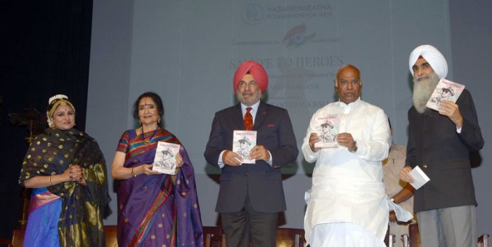Subhashini was devastated. Overcoming her personal tragedy, she decided to establish the Foundation to empower the martyrs' families, by providing them financial assistance, extending its scope by offering educational grants to children, memorial awards to schools, where martyrs' children study, birthday gifts, empowerment programmes for the women, skill building workshops like computer and English classes etc., in collaboration with Pegasus Institute, Samvada, and Anekataa. Salute to Heroes was started as a platform for arts, mainly to fund raise and to build awareness of the sacrifices of the soldiers among the civilian community. Celebrating a decade, the Foundation announced that they would reach out to the families all over India and not limit to Karnataka only. In this endeavour, all the way from Delhi came General J.J Singh, COAS and Governor of Arunachal Pradesh, Mr. Kharge, Congress Govt.'s leader of opposition in Loksabha, Mr. Chiranjeev Singh, former Ambassador, and extended financial support. Mr. Singh gave a cheque of Rs 1 lakh from Masti Venkatesh Foundation and Mr. Kharge announced Rs 2 lakhs for the Foundation. Several other supporters also donated various sums. General J.J.Singh observed that martyr's wife termed as ‘Vir Nari' does not need pity. She deserves to lead full life, discover her true potential and make her and her loved ones' lives brighter and more successful. For her work, Subhashini has received the Neerja Bhanot award. A successful Bharatanatyam dancer with two daughters who also perform Bharatanatyam, she firmly believes that education and empowerment through arts is an effective means of reaching out to people across the country and creates support system - not only financial support but also emotional support. Through the Foundation, she has succeeded in establishing liaison between civil agencies, the Govt. and next of kin of martyrs. Subhashini mentioned that for past two years she was not performing and was feeling very low. Vimala Rangachar, a close friend of hers and of Vyjayantimala, suggested that she could study under the veteran. On learning about Subhashini's Foundation, Vyjayantimala agreed to train her. For more than past one year, Subhashini has been studying under Vyjayantimala, the Tanjore bani, as she has studied under Kittappa Pillai, a descendent of Tanjore Quartet. Subhashini's late Guru Narmada had also studied under Kittappa. Thus there is a continuity and direct lineage of the bani in her dancing. This was also for the first time that Vyjayantimala was conducting nattuvangam with her musicians in Bangalore. The program Subhashini presented had a distinct style of Vyjayantimala. Right from Alarippu, Subhashini revealed her mastering the technique with perfect basic stance. Vyjayantimala had designed a simple costume for her disciple. The style known for its architectonic beauty, straight lines and geometric perfection helped to highlight the grandeur of nritta. Unhurried movements in slow tempo were a delight to watch. More of a feeling of peace than razzle dazzle, it created aesthetic beauty. Gopalakrishna Bharati's Devi Kriti in Jaganmohini raga and roopaka tala saw Subhashini creating iconic image of the goddess. The epithets Anandi, Jaganmohini, Adi Paratpari, Shankari, Paramakripa katakshini, Balakrishna Sahodari, found felicitous expressions. In the final stance when Subhashini wielding trident attacked the demon, there was shower of flowers from the heaven as the gods celebrated her victory. That was an imaginative and interesting touch. Vyjayantimala is known for Swathi Thirunal's Suma Sayaka varnam in Kaapi raga as she has learnt from Kittappa. The delineation of the bhavas with alternating nritta passages with exquisite laya was indeed a tour de force. The nayika's agony conveyed to Lord Vishnu with his four arms holding Sudarshan Chakra, Conch, Lotus and Gada, the mace, the flowery arrows Kamadeva aimed at her, the resultant pain caused to the nayika, unable to listen to cuckoo's singing, notes played on veena, losing appetite et al were depicted with suggestion and dignity. Kamadeva's turning into ash by Lord Shiva and the request of Rati to Lord Shiva to bring him alive was performed suggestively minus exaggeration. Sakhi requesting the lord reclining on Shesha, from lord's nabhi sprouting of the lotus in which resides Brahma and hence addressed as Padmanabha, had a poetic touch. Offering her pranams to Sarasiruhanabha, the lord, Sakhi beseeches him to have compassion and go unto the nayika. The swara, solfa passages were lilting enhancing the musical genius of Kittappa. The content and the form were internalized by Subhashini in a delectable manner. Much loved and commonly shared by majority of Kannada speaking rasikas, Purandaradasa's Rangayya devarnama was received with spontaneous rounds of applause. Set to Ragamalika and adi tala, it covered the succor the lord extended to Kari Raj, the elephant, when he was caught by crocodile, Draupadi when she was humiliated by Dushasana disrobing her and when childhood friend Sudama went to see Krishna with puffed rice as gift. The abhinaya was subdued minus melodrama and was appropriate, full of auchitya, as it should be. The poet addresses the Lord: Saptagiri Venkatesha, Sarpashayana Shri Purandara Vitthala, evoking bhakti. Subhashini's rendering was replete with bhakti. Tillana in Suruti and adi tala by Mysore Vasudevachar captivated the nuances of raga with movements that caught attention for its simplicity. Muthuswamy Dikshitar's composition as Mangalam in Vasanta raga generated the auspicious feeling of shubha mangalam, permeating the finale. Watching Subhashini's performance one experienced a feeling of shanta rasa, quietitude which springs from meditative quality and less of speed and cascades of teermanams. Such a performance left an impact, resulting into rasanubhava. ![]() Book release After the performance, a short film on Vasantharatnam Foundation was screened w