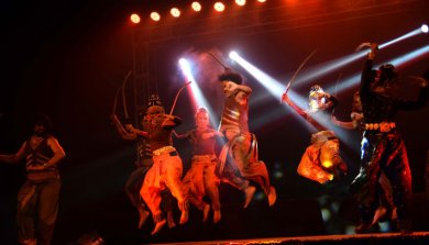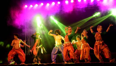 ![]() Paintings of K.G. Subramaniam Unfortunately barring a few leaflets, the old museum does not provide any catalogues or prints. The sculptures now transferred to new museum are displayed beautifully in large space and with excellent lighting. In some cases, coloured cloth is kept as a backdrop. What is fascinating is the vast space and one can move around and see the sculptures from various angles. There was also exhibition of celebrated painter late K.G. Subramaniam which had opened on the day I visited the museum. No photographs of the new museum were available. It is so vast that no way could I photograph it. However, in due course the authorities will bring out a book on the museum and its architecture. Since there is no other museum so vast and with latest state of art technique and facilities, it would help visitors to take with them some memories. I recommend all dancers and readers of my column to make it a point to visit the museum when in Patna. Patna offered us opportunity to stay together and exchange views on state of the arts. The hospitality was excellent. We all lamented the shrinking space for art coverage in print media and appreciated the efforts and vision of Managing editor Dr. Anita Ratnam and her team of Narthaki.com that offers the dancers and world of dance to get united with such other artistic experiences. Engrossing mythological tales: Tripurasamhara and Abhimanyuvadha Photos courtesy: Vanashree Rao Husband and wife team Vanashree and Guru Jaya Rama Rao are celebrated Kuchipudi exponents, who have won critical appreciation for their art. In recent years, Vanashree Rao has emerged as a choreographer in her own right. Researching and studying the Mahabharata and the Puranas, she has formed a group of their young Kuchipdi female dancers. Enlisting support of outstanding Bharatanatyam exponent Dr. S. Vasudevan and four other male dancers, including Mayurbhanj Chhau dancer Kuleshwar Thakur, she has named the group as ‘Rasa United'. She has been presenting mythological stories exploring the three techniques of dance successfully: Kuchipudi, Bharatanatyam and Mayurbhanj Chhau. She chose from her choreographic works two mythological stories Tripurasamhara and Abhimanyu Vadha for presentation for the Arthashila Dance and Music Festival organized by Takshila Education Society at Patna. And in the end, Vanashree presented specially choreographed Tillana in the aforesaid three styles in Sindhubhairavi raga. The improvised stage at Delhi Public School compound turned into a battle field. Tripurasamhara episode saw the three sons of demon Tarakasura creating human pyramid, showing off their prowess. The various acrobatic postures created impressive visuals. The postures and dancing by the Mayurbhanj Chhau dancers Kuleshwara Thakur, Prashant Kalia and Deepak Khandari, their faces covered with half masks were breathtaking. The three sons of Tarakasura were harassing the female devotees who prayed to Lord Shiva to protect them. Tarakasura was warned by Brahma that when his three sons will be together in a row, they will meet with death with one arrow piercing their chests. Lord Shiva made mount Meru the chariot, Brahma as Sarathi and, the sun and the moon two wheels, Vasuki the string and Vishnu as the arrow and destroyed the three demons, when they were found fighting in one row with one shot. The dramatic music and the performance by four female dancers in Kuchipudi style and the three male dancers in Mayurbhanj Chhau style with high energy kept the audience in thrall. Vanashree had specially choreographed another mythological story weaving it around the twelve Jyotirlingas. To the melodious music designed by Vanashree and composed by a team of musicians including Dr. S. Vasudevan, vocalist K.Venkateshwaran, Rajat Prasanna for flute, for special effects from Bangalore another musician by name Prasanna, and percussion mridangam, pakhavaj and khanjira by R. Kesavan, violin by Master Raghavendra, the recitation for 12 Jyotirlingas evoked bhakti rasa. The postures taken by dancers for each Jyotirlinga with the name of the sthala, the place, circling round created an illusion of a temple. In particular, one at Ujjain and one at Varanasi were noteworthy. Mentioning each sthala in praise of Lord Shiva, Vanashree wove the story of Markandeya, who at 16 was to be taken away by Yamaraja, but Markandeya prayed to Lord Shiva to protect him and clung to the Shivalinga, from where appeared Lord Shiva and saved him from the noose of Yamaraja. The entry from the upper stage by Vasudevan as Lord Shiva was dramatic. Enacting the two roles of Yamaraja and in a trice moving around impersonating Lord Shiva, Vasudevan danced dramatically taking the pose of dancing Shiva extending abhaya hasta for protection to Markandeya. Kuleshwar Thakur as Markandeya in Mayurbhanj Chhau style moved gracefully, offering flowers, applying sandal paste to Shivalinga and prostrating before the lord for protecting him.