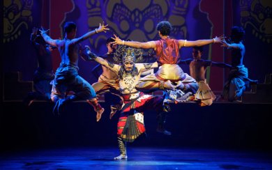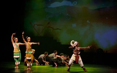 I saw in the orchestra pit, Dr. Rajkumar Bharathi and his team of musicians including Abhishek Raghuram, Savita Narasimhan, Srikanth Gopalakrishnan and others humming, instruments were being tuned, Javanese musicians of Bimo Dance Theatre looking after Gamelan, on lights the ace light designer Gyan Dev Singh, projection animator from Knownsense studios, sound designer and musician who had been to Singapore two months ago for mapping the theatre for 3D quartered sound effect, and on stage from Chennai, Lavanya Ananth, who played the role of Sita, Hari Padman from Kalakshetra, who played main role of Hanuman, artistic director Aravinth Kumarasamy who had visualized this mega production, rehearsal master Renjith Babu, several dancers from Apsaras Arts, guest Kalakshetra artists and choreographer Mohanapriyan Thavarajah, who played roles of Indrajit, Jatayu and Vayu Devata, Javanese dancer Osman Abdul Hamid who played role of Ravana in Javanese dance style, and several others. On the large screen were projected colorful scenes of forest with trees, leaves falling from branches of the trees, birds chirping and flying - one was transported to a magic world. The melodious singing by Savita Narasimhan filled the hall. Rajkumar spoke about Vilaskhani Todi echoing the wailing agony of Sita separated from Lord Rama and taken as captive in Ashoka vana in Srilanka. It was like a jigsaw puzzle. Jayanti Subramaniam had choreographed Sita's role in July in Chennai and it was now being rehearsed with live music, light and sound design. Aravinth, Rajkumar Bharathi, Gyan Dev Singh, Sai Shravanam, visual media designer Himanshu Gosh all wore head phones conversing for cues. Sometimes cues were not in time. Light designer was told to focus light on a dancer's face for expression to be registered. Watching this process, I was quite amazed at how the whole production was being put in order. Travelling with director Ratan Thiyam abroad, watching rehearsals backstage in Brooklyn Academy of Music theatre (BAM) in New York and in other cities, I was used to seeing the shaping of the plays with lighting, sound, music and dance. Therefore, this privilege to watch Anjaneyam being performed in different sections was fascinating. As a matter of fact, Aravinth told me that for three days they would rehearse to see that everything is perfect. The pre-view with costumes would give a glimpse of how it would be staged on opening night. More than 100 persons were involved in mounting this production on a grand scale. A theatre like Esplanade with excellent infrastructure made it possible to realize Aravinth's dream. But it was indeed important to dream and hard work for more than a year coordinating several aspects was a Herculean task. To enlist support of various dance companies from Indonesia, Chennai, Singapore, musicians local and from abroad and seamless weaving of all together for final artistic confluence is no easy task. I am grateful for being invited three days in advance to watch the entire process, acquainting me with how things were working, and meeting the technicians, artists, musicians and move freely backstage amongst them, asking them questions, watching the organization and listening to the lyrics set in various Hindustani and Carnatic ragas, musical effects and the total ambience. It was heartening to see the cooperation and bonhomie among them. Unlike Angkor, this time Aravinth had commissioned projections of backdrops in colourful paintings. Sea waves, mountains, forests, royal court of Ravana, Lanka set on fire, Hanuman flying across the sea, bringing Sanjivini plant with the hillock, and the final battle. With clever ploy the only heavy set was high stage on either side from which Rama and Ravana fight. When golden deer appears, excellent setting of dark forest with several galloping deer, among them one with its contours lit up as golden deer were used. Sometimes to show simultaneous event, the screen was split into two to suggest same time - a cinematic effect. Also carrying forward the narrative, flashback was used, and imaginative use of chorus, a la Greek theatre, reflecting what the main character is thinking. For instance, five apsaras circle round Sita when she plans to hang herself from branch of a tree by her long braid. The apsaras hold long braid in their hand, stretch them and circle round Sita. Before she tries to hang herself, Hanuman jumps praying Sri Rama Jaya Rama Jaya Jaya Rama. Then when Sita narrates her plight, how Ravana kidnapped her and Jatayu fought valiantly, the use of flashback is done imaginatively. From green rooms allotted to the artists emerge Dhananjayan, Shantha and Balagopal. Our friendship goes back for more than 60 years. We reminisce about our meetings at Kalakshetra, their performances in Mumbai in 1957 during Vegetarian Congress - Sita Swayamvaram dance drama was staged for the conference at Bharatiya Vidya Bhavan. Dhananjayan and Balagopal were performing on stage after 50 years! Dhananjayan had left Kalakshetra, but Balagopal had continued to play role of Hanuman for which he has become a legendary figure. He has trained Hari Padman well as his successor. In Anjaneyam, Dhananjayan appears in Prologue and Epilogue as Valmiki visiting Himalayas in his twilight years and sees Ramayana written on stone by Hanuman. Their meeting is very emotional - in real life and during the dance drama. Valmiki praises Hanuman's Ramayana but Hanuman says that Valmiki's is best and throws away his in the ocean. It is said that Valmiki takes avatar of Tulasidas and writes Ramcharitamanas as tribute to Hanuman. Their brief appearance is very moving. It is a brilliant artistic coup in featuring these two veteran artists.