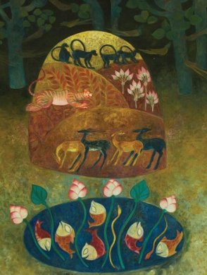 The final show was on 17th November. It was amazing how Aravinth managed to mount this large scale production featuring dancers and musicians from Singapore, Indonesia and India, convincing Esplanade to join hands and part finance it. The costume designer Mohanapriyan Thavarajah showed me the exquisite costumes he had designed for various characters like Ravana's royal robes, the crowns, headgear of Hanuman and so on. The story is well known. Drawing from other Ramayanas and Javanese Kakawin Ramayana, Aravinth has woven the story, with flashback, at times narrated by musicians, palaces move and forests appear, sea waves roar and Hanuman flies, sets fire to Srilanka - lighting and sound create astounding effect. Such a large scale production deserves to be seen in other cities in India, where Ramayana is known to everyone and its performances are a living tradition. Even when we do not have anything to compare with Esplanade Theatre in Singapore, NCPA in Mumbai, Sir Mutha Venkatasubba Rao Concert Hall in Chennai, and Siri Fort in New Delhi are venues where this production can be mounted. We wonder with all the wealth India boasts of why there is no national theatre comparable with Esplanade and its infrastructure. It is time those in power take this issue seriously and let us have in India, a theatre where we can enjoy such productions. Kuala Lumpur Dairy Photos courtesy: Sutra The Blue Mountain Exhibition: Ramli Ibrahim is the most renowned dancer in Kuala Lumpur, Malaysia. He has been honoured by Malaysian Government with civil honour Datuk, similar to our Padma Shri award. His Sutra Dance Theatre has performed his several choreographic works in Odissi in major cities of India regularly. He has a huge following in India. The moment his shows are announced there is a buzz about him and the auditoriums are full. He had a close association with painter Dinanath Pathy. For his services to Odissi, Ramli has been honoured with the Sangeet Natak Akademi award. ![]() Dinanath Pathy was the father of Contemporary Modern Art of Odisha. A renaissance figure, poet, painter, institution builder, writer, curating international exhibitions for fronting arts, crafts, dance, music, theatre of Odisha, Dinanath has rendered yeoman service to Odisha and built bridges between Odisha and Malaysia with close collaboration with Sutra for more than twenty years. The Odiya artists have created works of great art in Kuala Lumpur exhibited in Kamaria Gallery and Sutra Gallery. In words of Ramli Ibrahim, the painting's composition is centrally and systematically designed. It speaks of an imaginary fauna and fauna-flora utopia of the Soul of Nature supremely balanced in its interconnected existence. Dinanath's ubiquitous Blue Mountain not unlike the mountain tree of life and central puppet entity which opens the Malay-Indonesian shadow play Wayang Kulit, contains the created world - with monkeys, tigers, deer, and foliage – painted in muted earthen terracotta orange brown culminating in a luminous yellow sheath around a blunt peak. A round pool with swimming fish, wriggling snakes and lotus flowers in bluish green hues representing the elemental world of waters, tree trunks and flying birds decorate a dark ominous void of the upper world. Dinanath's paintings remind us that life has no absolutes of his idealistic aspirations as well the reality of destiny over which we have no control. Ramli Ibrahim and Dinanath Pathy's working together has given the world, best dance productions. The very fact that in Malaysia, Odissi, India's exquisite classical dance form has taken roots is a matter of great significance. The tribute to Dinanath with his paintings shall go down in history of two nations as most important landmark. The paintings of other ten painters from Odisha including those of Dilip Tripathy, Ramhari Jena and Kishore were displayed at Sutra Gallery. Indian High Commissioner Mr. T.S. Tirumurty spoke eloquently and explained the significance of The Blue Mountain, the term which has come to us through centuries as mentioned in Kamban's Ramayana when Lakshmana in battle with Indrajit is wounded and falls, Hanuman is asked to go and find the Sanjeevani plant on the Blue Mountain. Lord Jagannath's temple in Puri is located on former Nilachala - blue mountain. Mr. Tirumurty even mentioned how in Harry Potter's account, the mountain is mentioned. He drew attention of young in the audience to connect with history when looking at the paintings. Excerpts of Ganjam: Ramli organizes events with great sensitivity. For four days in the evenings, I used to watch the rehearsals of Ganjam, the choreographic works he mounted with assistance of late Dinanath Pathy incorporating the palm leaf paintings found in Ganjam and traditions of Sakhinata, Daskathia, Prahalad Natak, Tantric Goddesses, and Dashamahavidya in imaginative manner. Assisted by Guru Gajendra Panda, Ramli's production Ganjam is a landmark. Ramli was to perform it at Konark Dance Festival. Watching rehearsals was quite an experience. For warming up exercises, Ramli gives a class in ballet. That helps dancers to have flexibility and their bodies are tuned up for difficult movements. Ramli had training in ballet and was a performer in Sydney Opera House in choreographer Graem's company. During my stay, I learned a lot about Ramli's training methodology. No wonder he has an outstanding dance company. Ramli had planned to present few excerpts after formal inauguration of the exhibition. There is a lovely open air theatre surrounded by luxuriant trees on which dressed in eye catching colourful costumes, dancers trouped in to melodious Odissi music. The pallavi like composition performed by the dancers looked marvelous with excellent lighting by Sivarajah Natarajan. Ramli also presented Devi Moksha number in which the Tantric Goddesses dance both in their terrific and gentle moods. Twelve year old dancer Aishwarya performed with complete involvement and when she is lift