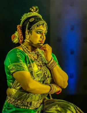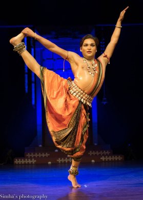 Adi Guru Pankaj Charan Das’s choreography of Nava Durga is another gem of a choreographic piece, taking from Vyasa the prayer Bhagavati Jaya Bhagavati Devi Namo vara de. The prayer goes further describing Bhagavati’s iconic form, as one who annihilated Shumbha and Nishumbha demons, wearing garland of skulls, and so on. In group choreography Odissi as a dance form offers scope for projecting multi armed goddess, dancers standing behind and extending their arms wielding various weapons. With imaginative lighting, Sai Venkatesh created magic. Rhiya, 12, the young daughter of Sarita, presented a solo. Performing Pallavi in Megha raga choreographed by Ratikant Mohapatra, she gave ample proof of her taiyyari and commitment to study Odissi. She is a dimpled beauty like her mother and performs with total involvement. Managing to execute nritta movements perfectly, she danced confidently. She is bound to do her mother proud with more exposure. From Bhubaneswar, Odissi dancer Saswat Joshi presented two numbers. The group composition in praise of Mahakali saw dancers forming various formations. The Sanskrit text with fierce and benign forms of the goddess had Tantrik overtones. Various tableaux were enacted to the rendering of Jai Mahakali, one dancer in the centre and others circling around her, the collective prayer with chanting of Jayatu Mahakali, Bhadrakali, Kapalini, Durga, Chandi, and ending with Narayani namostute shloka the cause of creation and sustainer of the world, the dancers beseeching the blessings of the Goddess ended the group number with auspicious feelings. Saswat Joshi has partnered Italian Odissi exponent Ileana Citaristi, disciple of Guru Kelucharan Mohapatra, for past many years. He runs his own dance academy in Bhubaneswar. With commanding stage presence he impressed the audience with his professional presentation. In Shivashtakam choreographed by Ileana Citaristi, Saswat created images of the lord emphasizing his auspicious aspect, with Shivam Sundaram recitation. One of the karanas known as Vrishhcika karana, the shape of the leg of scorpion, bending his body, and the leg touching his head was quite sculpturesque and imaginative. Wielding trident in his hand and with third eye, Trinetra, his fierce nature was evoked. But all pervading shubham was the essence. Shivam Shankaram resonated giving the composition auspicious feeling. Saswat’s next presentation was an attempt to combine pure dance using pallavi in Megh and Miyan Malhar ragas, investing nritta with expressional aspect of vipralabdha (separation) and samabhoga (union) shringara, as Varsha, the rainy season evokes desire of union among lovers. The nature and birds also dance in joy, as one watches peacock with his full spread out feathers dancing with joy. The nayika was portrayed as bashful, being embraced and kissed by the nayaka, in physical union. With physical command, Saswat performed split, lowering himself to the floor and also took urdhva tandava pose of Shiva, lifting his leg upwards towards his head. That won him rounds of applause from the young members of the audience. It is natural for a dancer to get carried away with applause. However, Saswat needs to guard against playing it to the gallery, as he has a lot to offer from traditional numbers which lift audiences’ spirits to higher level. ![]() Saswat Joshi ![]() Surya Rao The finale was by a vastly gifted young dancer well versed in Yakshagana, Bharatanatyam and Kuchipudi. Surya Rao is a name to reckon with among multi talented male dancers in Bangalore. I had the good fortune of first time seeing him in his male warrior role in Singapore, playing the role of a majestic King in a dance choreographic work. Last year in dance festival organized by Veena Murthy Vijay in an open air stage of a Ganesha temple, he had wowed the audience with his inimitable abhinaya of Satyabhama in Bhama Kalapam in Kuchipudi. The tradition of male dancers enacting female roles is still alive and this rupanurupa tradition he embellished by his superb abhinaya. The navarasa were at his beck and call. Requesting sakhi to go unto Lord Shiva and convey her deep intense feeling of love and bring him unto her; as Ganga he displayed several subtle nuances of lajja, shyness and in a repartee with vachikabhinaya answered the sakhi who made fun of Ganga describing Lord Shiva wearing Vyghra charma, tiger skin, applying ash on his body etc., he created mirth and fleeting expressions of coy nayika in a seamless manner. The audience was eating out of his hands. Veena Murthy Vijay recalled how few years ago, B.Bhanumati, she and Usha Datar had performed it as a dance drama in different styles. The audience gave Surya Rao a standing ovation. It was a memorable performance. The second day of the festival The second day of the festival had the stalwarts performing. The audience was all agog to witness the senior dancers. Guru Maya Rao’s disciple and daughter Madhu Nataraj, attired in eye catching costume, with her tall and slim figure performed Kathak as she has studied from her legendary mother to a dhrupad composition in chautala. Mata Bhavani was danced gracefully, bestowing on devotees bounties, and she is Ya Devi sarva bhuteshu in various forms, mother and all pervading Shakti. The Kathak vocabulary in its subtle glory was enchanting. Madhu spoke of the spectrum of Kannada literature and exploring it, choreographing with Maya Rao, the sharani, surrender aspect of poetess like Akka Mahadevi, incorporating advaitin philosophy, where the devotee becomes one with the God, merging with him, transcending space, extolling non-shringara aspect. In abbreviated version of 11 minutes, Madhu danced performing disappearance aspect succinctly. The music of Praveen D Rao highlighted the mood. The translation by Madhu’s uncle Subbarao was comprehensive. Madhu ended her performance recalling the style of thumri as was performed by Kathak dancers of yore while sitting and enacting abhinaya. M