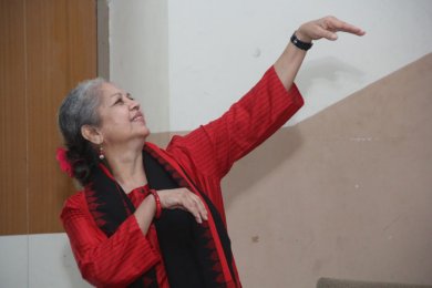 Geeta Chandran's three disciples from Delhi presented three Bharatanatyam numbers, choreographed by Geeta under the dance title Swara Raga Sudha. Amrithasruthi Radhakrishnan, Radhika Kathal and Madhura Bhrushundi are well trained young dancers with more than ten years of experience and exposure having performed solo as well as in group along with Geeta Chandran. In her choreographer's note Geeta mentions that the creative exploration in classical Bharatanatyam plots the cadence and flow between music/sound and body/ dance. It constructs a stunning hyphen between the breath of both disciplines -music and dance. It is an abstract discovery of movement, there is sequenced exploration, bringing to the dance the classical training and understanding of movement. I visualize that dancers' bodies veritably must melt into the raga's notes. This heightened understanding of Geeta is further complimented by three dancers giving thought concept which is 'abstract', a 'concrete' shape, the way three of them hold their arms and palms, standing rock steady on one leg, other bending backwards in vrischika karana, a scorpio bend. Their horizontal arm movements, creating various geometrical patterns are a visual treat, along with mnemonic syllables, jathis and enchanting music. These explorations set apart Geeta's choreographic vision that transforms in her disciples' dancing. Geeta has reconstructed Telugu varnam "Vanajakshi for three dancers enabling them to impersonate different roles in a seamless manner. Krishna's lotus eyes find felicitous expression with hastas that spring with ease, eyes that sparkle, the river Yamuna's waters flow, and when the dramatic episode of subjugating poisonous serpent Kaliya, the game of playing with ball, its falling deep in waters of Yamuna, Krishna's jumping into it to retrieve it, and dancing on the hood of Kaliya, et al take place before our eyes like watching a painting. Geeta's sense of choreographing it for three dancers is impressive. The finale Tillana was like a flash of lightning. The three dancers performed it with uniform movements, symmetrical and scintillating. There was that joyous abandon in periya adavus, covering the stage. No wonder they received standing ovation from the audience who sat through, though it was rather late when the programme concluded. The symposium held in the morning dealt with literature and poetry. From Ahmedabad, Sonal Majumdar, born as Nagar and descendent of poet Narasimha Mehta, expressed how she wanted to dwell upon the subtle nuances and spoke about the poems of Narasimha Mehta. She told an anecdote about a devotee's express desire to see Raslila of Krishna, holding torch in his hand, and he was so absorbed watching it that his arm got burnt but he did not realize it. She spoke of Narasimha Mehta's well known poem "Jala Kamal chhandi jane Bala," the wives of Kaliya serpent praying to Krishna and not to wake up their Lord, as performed in Bharatanatyam, and thereby reaching a large audience. Also interpreting the meaning of stanzas, environment, the population of Nagaloka, tribals, the Ahirs, suggesting how they were being subjugated and the injustice done to them. Taking myth and interpreting it with contemporary references and situations how one can extend the horizons of literature and dance with configuration of two disciplines was an interesting point she made. How she had choreographed them in Bharatanatyam - of particular interest was Narasimha Mehta's poem "Kunvarbai nu mameru." When his daughter gets married, the bridegroom's people make demands of what they want from the bride. In order to embarrass Kunvarbai, the bride, they make demands which Kunvarbai's father cannot fulfill. Then Lord Krishna comes to his rescue taking role of a wealthy merchant Shamal Shah and saves the father of the bride and the bride from humiliation. It also resonated with cotemporary social issues though it was not with that intention the choreographer had taken the poem. It was mainly used to make audience understand the content in Gujarati with use of appropriate music and Bharatanatyam style. From Ahmedabad, Suprava Mishra spoke of how settling in Gujarat after marriage, as an Odiya performing Odissi dance, she selected the Gujarati translation of renowned Gyanpith awardee Odiya poet Ramakant Rath's poem Radha and set it in Odissi technique. Ramakant Rath's Radha is not a cry baby, but an independent woman, deeply in love with Krishna, at the same time not shedding tears when in separation. This depiction of Radha as a nayika is very refreshing. She also had set Narasimha Mehta's "Vaishnavajan" poem, popular as Gandhiji loved it, as a prayer. Using it as a suite of Odissi repertoire from Mangalacharan to Moksha, she used different stanzas for different items of Odissi. In item of Pallavi, taking inspiration from the sculptures of stepwell known as Rani ki Vav, using the sculptures of dancing damsels of Shilpaprakash text, she employed those motifs. Barring two incarnations which are not found in the stepwell, she also used as specially choreographed Dashavatara item. It was heartening to see her initiative to use various arts besides literature in her chosen medium of Odissi. Manjari Patwardhan from Rajkot, a disciple of Rajendra Gangani, presented celebrated tablist Kishan Maharaj's Ganesh Paran. Fond of literature, though Maharashtrian by birth, she relished Gujarati poems. With help of her friend Indu Joshi, a poetess in Gujarati, she got in touch with Shitanshu Yashashchandra and undertook to choreograph in Kathak style, Narasimha Mehta's long akhyan "Kunvarbai nu mameru." Setting it in Kathak using gat bhav, palta, tatkar, bhramari and other intra forms of Kathak, she showed how such a theme can be used for depicting such theme in dance. I mentioned Kumudini Lakhia's choreography of Okha Haran which was performed for her institution Kadamb which had 22 shows. Poet Rajendra Shukla recalled how Gujarati text was a big success. Shitan