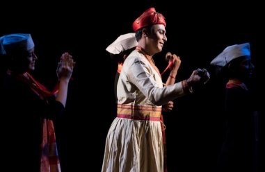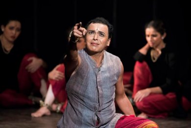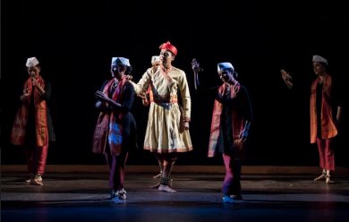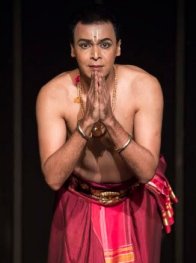 Vaibhav Arekar told us that Sant Dnyaneshwar has said that Lord Vitthala had conversations with Sant Namdev only. Namdev addressed Vitthala as Vitthai. He was asked as a child to go to the temple and offer naivedya to Vitthala. We saw Vaibhav transform into a child Namdev placing plate of naivedya before the idol and begged Vitthala to eat. He cajoled him, closed his eyes and even threatened him - hitting his head on the floor, stamping his feet, folding his hands, telling him that if he does not eat, his mother would scold him and punish him. The enactment was so convincing that one felt the intense urge of a devotee experienced by Vaibhav. Sudha Raghuraman's soulful rendering enhanced that effect. Such conversations with god are rarely seen. The dancers created image of Varakari sampradaya, spreading bhakti through singing, going on a pilgrimage, with namasankirtan (recitation of the name of the lord). Vaibhav has conceptualized this production as Namdev's spiritual awakening. As a versatile dancer and choreographer, Vaibhav used the idiom of Bharatanatyam in various imaginative ways. The opening Alarippu with five female dancers and Vaibhav, slow focus of light on each dancer by Sushant Jadhav, revealed the exquisite choreography, the strength of the form with its geometric precision. The singing of Tukaram's abhang along with it went hand in hand. The chorus of dancers with white scarves, white caps, castanets like instruments and cymbals took us on a pilgrimage. Vaibhav's explanation of Namdev's journey and the parampara of other devotees, the abhangas of Janabai, Sant Savtamali, Eknath Maharaj, Sant Namdev, Sant Tukaram rendered movingly during the unfolding of the performance succeeded in lifting the spectators 'to an experiential state called bhakti.' Namdev's search for the guru, the advice given to him by the guru to look inside and search for the god from within, not like a bhramara - a bee - fleeting from one flower to another, to overcome the desires which like serpent engulfs one; the only way was shakti, energy of Naamajapa (the recitation of the name of the lord) that would bring realization and the devotee closer to god. The excruciating agony, the restlessness, the helpless state seeking the lord, were expressed by Vaibhav to the heart rending aalap by Sudha Raghuraman, and running round the stage, using pataka hasta, the desire to embrace God, moving palms all over body, the determination to seek him, by stamping feet, the use of metaphor by which the form of Bharatanatyam achieves through abstraction, this insufferable pain to merge with god were extremely touching. The series of saints has addressed the lord in various ways. Janabai treated Vitthala as a household servant to help her in daily chores, Gora Kumbhar saw god in creation of pots, Sant Savtamali in their vegetables, the onions, the crop, dancers driving the bullocks, the folk dance movements and singing merrily saying with pride that, 'we are the gardeners and farmers worshipping god.' Namdev found that society did not allow the low caste devotees even to have a glimpse of the lord. The group sequence with which Namdev moved and removing his pugree, put on a scarf and turned in a trice into untouchable devotee Chokhamela, despised by high society and physically punished, who was crushed under a wall and died seeking glimpse of the lord, was enacted with extreme devotion. It is said that Namdev built a samadhi of Chokhamela in front of Pandharpur temple and even today no one enters the temple without first visiting the samadhi. Enacting sanchari bhava in a suggestive manner in Bharatanatyam, Namdev questions the lord of the orphans - anaatha cha naatha. He who rescued his devotees like Gajaraja whose leg was caught by a crocodile and saved him with Sudarshan chakra, when would he come and help low caste devotees? The group of devotees seeking glimpse of the lord and the fear that grips them was enacted with such intensity that one would remember it for long. The finale with Brindabani Sarang in form of tillana merged in a seamless manner of chanting of Vitthala, the Bharatanatyam movements transforming into prayer, dancers with hastas suggesting form of Vishnu, dancing in circles, jumping in ecstasy as it were to reach the lord high up were a marvel of choreography. Vaibhav and his dancers achieved it so effortlessly. The use of chorus, group formations, and subtle use of Bharatanatyam technique, blending with local flavor of Maharashtrian folk movements and singing, chanting of Vitthala and Panduranga, and regional simple costumes evoked the period of bhakti movement and the living tradition of Varakari sampradaya placing Namdev in right context. Vaibhav has also been trained in theatre which he employs with ease.