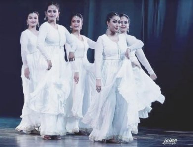 ![]() e-mail: sunilkothari1933@gmail.com Why Kumudini Lakhia's Kathak stands out for its presentation Photos: Sanchit Kapoor June 7, 2018 When Kumudini returned from London after performing with Ram Gopal and settled in Ahmedabad after her marriage with musician Rajani Lakhia, she was already an internationally renowned dancer. Her exposure to world dances, ballets, costumes, lighting and showmanship helped her a lot to improve the presentation aspects of Kathak. She received scholarship from Govt. of India to study Kathak under Lucknow Gharana maestro Shambhu Maharaj in Delhi in late 50s. She had studied Kathak under Radhelal Mishra of Jaipur gharana and dancer Ashique Hussain Khan. However, with her innate sense of aesthetics she was not happy with the way Kathak was presented in those years. She was aware that the art she was learning was from the traditional gurus who were supported by a feudal system. And that is the first thing she planned to do away with, to free Kathak from feudal system. During the Mughal rule Kathak in courts was presented to please the rulers and the salutations were de rigour, to the ruling Nawabs. Dispensing with it was quite tough, as the Gurus were not used to permitting such freedom to the disciples. There was such a slavish presentation in solo form. It is customary to recite mnemonic syllables, the bols, in a standing mike and perform nritta items like tode, tukde, tihai, aamad, parmelu. Often it is necessary if the accompanist table player is new one. He can listen to the bols and register it like a blotting paper and reproduce on tabla. But when a dancer warms up and executes vigorously she loses control over breathing and cuts a sorry figure. Kumudini arranged for someone else to recite the bols called padhanta. But what bothered Kumudini most were the way costumes were put on by the dancers. With a wealth of handloom and excellent fabrics she designed costumes which helped the Kathak form to shine. The skirts were so designed by her and her colleagues that the flowing of the skirt when chakkars were taken also circled in an artistic way. I remember once she was designing costumes for her new production in Ahmedabad in early seventies. She had invited me to see the rehearsals. The traditional silver like khadi print often seen in Rajasthan drew her attention and she used it on saris and also skirts, ghagharas. She explained to me why khadi print stands out for its subtle colour. With her exquisite colour sense, she was careful not to have clashing colours for costumes. She also was aware of terrible lighting with red, yellow, green, purple colour circular gadget that made a mish mash of colours destroying the beauty of the costumes. Over the years she set high standards in terms of costumes both for girls and boys. The long shervani like angarkhas with variation of subdued colours looked more dignified than the Lucknow type of coats, pyjamas and caps, which looked dated. She avoided shining material for costumes. Instead she improvised the costumes and removed caps. She removed waist bands. As a matter of fact Kadamb's history of evolving costume is quite fascinating. For her latest choreographic work Tarana composed and sung by Madhup Mudgal, she chose white costumes for both male and female dancers. The snow white costumes by young Anuvi Desai under supervision of Kumudini with exquisite lighting by Gyandev created an illusion of swans. The way the skirts were designed with two layers was done with a purpose. The two pieces of cloth flew like wings of swan, when dancers took chakkars. "The flying of skirts was carefully under control," said Kumudini.