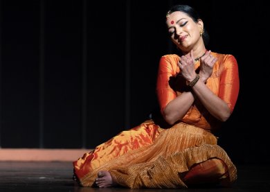 Vidhya Subramanian divides her time between India and California. Disciple of Swamimalai Rajaratnam Pillai of Vazhuvoor bani, she has earned fame as a gifted dancer. Not being content with the traditional Margam in Bharatanatyam, thinking out of the box, she has been working on mythological theme, interpreting it in a manner to have resonance of contemporary issues. In her version, after dramatically narrating life of Draupadi, she has towards the end attempted with vachikabhinaya to raise the issue of patriarchy that treats women in a deplorable manner. On stage, alternative installation of painting shows eyelids of Draupadi, below yoni and on side blurred figure to which is attached a long yellow robe. The colours are of fire, suggesting Draupadi's birth as Yagna sambhuta, born out of fire, daughter of Drupad. Divided into seven acts, in the first act Ashes, we see a figure covered with a veil rising from the ground. It is Draupadi, mourning the loss of her children killed in the Kurukshetra war that took place at her behest. She wanted revenge for all the humiliation she had undergone. She has used Priya Das's Hindi lyrics. Vidhya has created this solo dance theatre, using Tamil, Bengali and Kannada lyrics and English for dialogue and soliloquy. The second act is titled Luminance in two parts. In part A, she reminisces on her birth. The symbolism aimed at 7 chakras beyond the 5 senses suggests 5 Pandavas whom she marries, and she is the 6th sense that connects them. With special light effects, her luminance is well captured, as luminous as fire (agni sambhuta) from which she emerges. In part B, she is seen talking to Gandhari: 'Holding darkness within your soul, you failed to act that day in court, and chose to be as blind as your husband. O Gandhari! Come, see your sons getting punished in hell. The sons you failed to stop from committing shameful acts!' Priya Das's Hindi lyrics are translated by Prof Raghuraman in Tamil. In Act III (Kindling), the narrative moves further where Draupadi tells story of her swayamvara. The condition was to shoot at the eye of a revolving fish up on a pillar, balancing one's self and looking at the reflection below in the water. Karna, the son of a charioteer advances, whom Draupadi rejects saying that he does not belong to a royal family. That becomes a pivotal point for the Kurukshetra war. Draupadi is married off to a stranger Arjuna in guise of a Brahmin. Is he Arjuna, whom Krishna had promised her would be her husband? This section had Bengali lyrics by Rajib Das and Swagato Basumallick. Draupadi, with contempt and arrogance, questions Gandhari, and wonders at a stranger, who succeeds in shooting the eye of the revolving fish and she walks behind Arjuna after being garlanded by him holding his hand, meekly. In Act IV (Combustion), Draupadi questions Yudhishthira on what right he had to put her as a pawn in game of dice, after losing himself. She is dragged in court and is seen falling on the floor with sari entwined around her legs, struggling to free herself. The Tamil poem of Subramanya Bharati expresses Draupadi's agony. Enraged, she asks in court full of elders and her five husbands, it is not only her insult being disrobed, the sari that covers her body, the symbol of her honour, but it is a binding which is a trap under the oppressive patriarchy. She wows to keep her hair loose till Bhima kills violator Dushassana and she anoints her hair with his blood. In Act V (Carnage), Bhima splits Dushassana's body into two. Draupadi smears her hair with the blood, then braids and decorates it with Dushassana's intestines. Her head has tilak of his blood. But the lines blur as poet Kumara Vyasa (Kannada) questions: 'Is it Bhima or is it Draupadi avenging the torment perpetrated on her?' Act VI (Incandescence) is a conversation between Draupadi and Radha in English scripted by Shikha Saklani Malaviya. Draupadi speaks to Sita, and recounts all that as a devoted wedded wife she did, following Rama to forest, being kidnapped by Ravana, brought back when Rama vanquished Ravana, but she had to undergo agnipariksha to prove her chastity and even then when a washerwoman casts aspersions on her character, following his dharma as a king, Rama sends her to forest and Sita decides to go back to her mother earth. Draupadi laughs and tells Radha about her plight as a lover of Krishna, her illicit love, unmarried, Krishna dallying with other gopis and still after the physical union with Krishna, Radha asks Krishna to paint designs of flowers on her breasts with sandal paste! The ashtapadi from Gita Govinda 'Kuru Yadunandana…' appears ironic, and is deliberately sung. In the final Act VII (Uprising) Draupadi tells one and all addressing today's women that nothing has changed. 'Ab Govinda nahi ayenge' (Govinda will not come to rescue us anymore. Therefore rise my sister, my daughter, fight for yourself). Vidhya recites American poet Maya Angelou's time honoured poem 'Till I rise' that gives a powerful message of uprising against the problematic disrespect to women, a problem that simply won't go away. She speaks of the Nirbhaya incident, the humiliation, rape of women that continues to this day. Using Hindi lyrics by Pushyamitra Upadhyay and reciting English poem by Maya Angelou, Vidhya wins applause from the audience which is moved at her clarion call. In the metaphor of using the mythological character of Draupadi, Vidhya in her one woman show succeeds in making her solo dance theatre a memorable performance. The spoken words in English has an excellent effect upon the audience that comprises of different communities, speaking different languages, but knows how humanity and in particular women undergo torture. Vidhya has seen various episodes from Draupadi's life from a first person perspective, using take off points in mythology to transcend into images, to build a bridge between myth and life. One compliments Vidhya for her effort to present her work in this manne