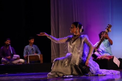 ![]() e-mail: sunilkothari1933@gmail.com An unusual Kathak performance by Ishwari Deshpande Photos: Rashmi Navelkar July 10, 2019 In August 2013, when Guru Mohan Rao Kallianpurkar's centenary celebrations were held at Pune by Prerana Deshpande's Nrityadham and Shama Bhate's Naad Roop Kathak institutions, Prerana Deshpande had performed in Chitramala composed by Mohan Rao. In Ganga Jamuna section, Ishwari Deshpande, 16, (daughter of Prerana and tabla vadak Supreet Deshpande) in the centre had executed the taal with such confidence and brilliance that the celebrated musician Satyasheel Deshpande had spontaneously said: "Wah, she is like AK47 Rifle!" That sweet 16, now 22, has turned into a mature Kathak exponent. Her recital on 29th June at Shakuntala Jagannath Auditorium, under the aegis of Nrityadham, was proof of her maturity and growth as brilliant dancer. Everything is going good for petite, charming Ishwari. From the age of three, she has been brought up in an atmosphere where round the clock there was dance and music. Her mother Prerana, a disciple of late legendary pioneer in Kathak in Pune, Rohini Bhate, groomed her from very childhood. Father Supreet Deshpande, an ace tabla vadak, son of the celebrated Kiran Deshpande, provided all facilities for her training. Being a daughter of parents who are artistes of a very high standard, Kathak is in the genes of Ishwari. Her own deep interest has helped her bloom into a fine dancer. ![]() What was special about this particular program titled Shanyayan, in praise of Lord Shani, the planet Saturn, was the excellent team work of young artistes. The accompanists were all young and keen to perform for such an unusual program where Prerana Deshpande has created a taal of 2 and half, 2 and half culmination into 7 and half. Not 5 and 2 and half. Not that easy way, but difficult with three khands of 2 and half each and one has to come to sam precisely in a manner which would seem so easy, but is in fact quite tough. During a conversation, Prerana told me that she wanted to explore the 7 and half matra taal for a long time. Inspired by the mythological story of Lord Shani, she composed a bandish in praise of Shani in taal she named Shanyayan. "Hey Shani taar lo" (O lord protect me). The story goes as follows, said Prerana: "I have called this taal time cycle as Shanyayan and bells. My first gurus are time and space. Our surroundings, the seasons and the planets have direct or indirect effect on our lives and our perspectives. In astrology, the god Shani, is said to be a tough influence on our lives, especially during a period of seven and half years (we call Shani ki saade saati), through three phases of 2 .5 years each. Most believers have a sense of fear or anxiety when the name of Shani is taken. On reading more about Shani, I realized that Shani is not troublesome, but more like the strict teacher who tests you to improve your ways. He is considered to be the god of justice, who puts you through a tumultuous time in your life to see whether you stay your ground by staying honest and principled, or you give in and take an easier way out." "Inspired by this and my own experiences, I wished to give my offerings to Shani Dev in the only way I can - my dance and my art. Thus the taal Shanyayan was created. It is unique because unlike all other half-matra taalas, Shanyayan does not have the half matras added just once. Shani Dev expects one to accept a difficult situation as it is and find a way with honesty and integrity, and not try to simplify it. Hence I have composed this taal with the intention of taking the difficulty head on - in its khand are 2.5, 2.5, 2.5, but such is not the way of Shani. In this taal, even the simplest composition becomes difficult because of the theka, and I have composed compositions that are even difficult in themselves!" "Not just the taal, even the movements choreographed in this are an attempt to invoke Shani by representing the various rings around the planet Saturn, or the phases of saade saati. The creation of this taal was a very natural process wherein the design or theka of the taal was spontaneous creation through feel, and the rest of the composition and choreography fell into place just as naturally. I gave a lot of thought to give name of this taal. Shani + ayan = Shanyayan (ayan meaning path). This creation is my path or way of surrendering to Shani Dev, hence Shanyayan. Even the composition, the bandish I gave to nagma is also my offerings to Shani: 'Ye jivan vikat bant par karan kathin' - this life is difficult to cross, it is not easy. One with pure mind and sincere meditation worships, he will have no difficulty in crossing the life. And I repeat, Hey Shani taar lo ye jivan." Prerana's explanation was almost like a choreographer's note and an entry point for audience to relish the performance. ![]() Before the performance began, Mrunal, the charming young announcer, also a disciple of Prerana, introduced the accompanists. On pakhavaj was Krushna Salunke, disciple of Pandit Suresh Talwalkar, Umesh Warbhuvan on Western percussion drum, also a disciple of Suresh Talwalkar and of Tafiq Qureshi, Shravan Samsi, son / disciple of Yogesh Samsi currently studying under Sitara Devi's son Ranjit Barot, Aditya Apte on vocal, disciple of his father Madhusudan Apte, on harmonium was Abhishek Shinker, disciple of Pandit Pramod Marathe and Pandit Nath Neralkar, and on sitar was Pandit Ravi Chary, disciple of Shaheed Parvez. It was a galaxy of young generation of musicians under the leadership of Prerana Deshpande who conducted the recital. Ishwari began with the prayer of Shani and highlighted his epithets in movements, Shani as younger brother of Yama, with skin of bluish colour, dark, with large eyes, fierce in appearance, to that Lord Shani, I bow and offer my pranams. Ishwari, petite as she is, unleashed such energetic chakkars and postures evoking the image of Shani with aplomb. With beautiful aalap on sitar, R