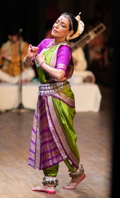 ![]() e-mail: sunilkothari1933@gmail.com Natanagar Dance Festival paid homage to Guru Shambhu Maharaj July 28, 2019 It is always a pleasure to see Madhavi Mudgal's Odissi recital for her seasoned approach and excellent selection. Selecting a shloka from Sangita Ratnakara in praise of Shiva set to music by Jitendra Abhisheki, she dwelt on variations of bols, mnemonics to suggest Shiva's Tandava with his favourite damaru. Takit takit takit resounded in a variety of ways suggesting dance of Shiva. The beauty of Lord Shiva, his three eyes and colour of his face, 'Mukhavilas', brought out the poetry in use of the suggestive hastas. This year's SNA awardee for Hindustani music Madhup Mudgal, Madhavi's brother, composed pallavi in raga Jhinjhoti. Madhavi brought elements of 'alas kanyas' alive in their languorous poses, as seen on the walls of temples in Odisha, with sensuous movements. There were subtle but curvaceous movements strung with tribhanga postures. Krishan Mohan, the son of legendary Shambhu Maharaj, had arranged the event under aegis of Abhyas to promote excellence in dance, promotion of talent among young and a variety of objects related to dance, on the occasion of Guru Purnima paying tribute to his father. Recalling having seen the great Shambhu Maharaj who used to visit Gandharva Vidyalaya to meet her father Vinaychandra, known as Bhaiji, Shambhu Maharaj watching a barely 5 or 6 year old Madhavi studying Kathak under the great maestro Narayan Prasad of Jaipur gharana, used to say seeing Madhavi's talent, "I want to give her Gold Medal. She is such a gifted dancer." Madhavi said every time he watched her he would repeat that. Though the gold medal never came, Maharaj's blessings are with her more than the material gold medal. Remembering him on this occasion she also recalled how she had seen the great Ghazal singer Begum Akhtar at Vigyan Bhavan singing in dadra 'Koyaliya mat kar pukar, lage karajava katar' the ever green ghazal, when she had received SNA Award. Like osmosis, Madhavi had internalized it, and to pay tribute to Guru Shambhu Maharaj, she had choreographed it in Odissi. It created nostalgia, the gentle way Madhavi as a nayika begged of the cuckoo bird not to sing since it reminds her of her beloved who is not with her and causes pain of separation. She writes a letter and gives to cuckoo to give it to her beloved. 'Go to Piya desh, where my beloved is and give him my sandesh, message', begs the nayika. She spreads grain on the floor where cuckoo bird on return, sits to pick up the grain. Still the bird is singing which the nayika is unable to bear. She says: 'My eyes get filled with tears and there is pain in my heart, stop singing, dear bird'. She embraces her and lets her go. Madhavi's entire being was replete with pain of separation further aggravated by the exquisite ghazal rendering. The appeal of this particular presentation evoked instant applause from the receptive audience. Madhavi concluded her recital by enacting 'Yahi Madhava, Yahi Keshava' ashtapadi from Gita Govinda, choreographed by Guru Kelucharan Mohapatra set to music by Bhubaneswar Mishra. One of the gems of Kelubabu's choreographies, Madhavi depicted agony of Radha at Krishna's lies when she spots telltale marks on Krishna's body having spent night with other gopi. The restrained anger of Radha was dignified and portrayed with feeling. The set of musicians gave her adequate support. ![]() Madhavi Mudgal Photo: Inni Singh ![]() Daniel Freddy and Rahul Pawar Photo: Sangeeta Das Banerjee Daniel Freddy and Rahul Pawar, disciples of Vaswati Mishra, regaled the audience to the traditional Kathak fare in teen taal, after the opening prayer in praise of Lord Shiva, 'Nagendra Haraya', which gave them scope for enacting Shiva's beatific and terrific forms. Holding trishul, pinak bow and arrow, his form as 'digambara', clad with directions, and his other images, they in a duet bowed to the Lord, 'Om Namah Shivaya.' This panchakshara stuti invariably creates the devotional mood. ![]() Rama Vaidyanathan Photo: Inni Singh Rama Vaidyanathan chose to present an elaborate Telugu varnam by Poochi Srinivasa Iyengar in praise of Srinivasa set to Vasanta raga and jhampa tala of ten beats. The sakhi confidante of the nayika, who is in love with Lord Srinivasa, is sent by the nayika with a message to the Lord to hurry up and go unto her. The simple outline of the story found a felicitous expression, gradually unfolding the state of the nayika in separation. Alternating with abhinaya and exquisite nritta performed with elan, to the sollus set by late Karaikudi Sivakumar, nattuvangam by Rishika and soulful singing by Sudha Raghuraman, flute by Raghuraman and mridangam by Sumodh, Rama was in fine fettle. Her leaps were like a gazelle, landing softly concluding with teermanams in perfect sync. Pleading the plight of the nayika, she described how deep her sorrow, her body aflame with fever is and concentrating upon the beloved Lord Srinivasa; the sakhi drew the picture of the helpless friend of hers. Addressing the lord as Tamarasaksha, lotus eyed one, sakhi said that the nayika was finding in each lotus only the lord's face. The elaboration for 'Tamarasaksha- lotus eyed' was poetic: Opening of lotus buds, nayika seeing in it the visage of the beloved lord, and the delicate touch of lotus, reminding nayika of the embrace of the lord. The sakhi describes further how she thinks the lord is handsome as Kamadeva. The depiction of Kamadeva with his flowery arrows was another poetic highlight. Not shooting arrows like a warrior, but holding flowery arrows in a gentle manner, aiming in various directions in an engaging playfulness, delicate, thrown from a side, over, surrounding her, Rama portrayed Kamadeva in delicate hues. Before chittaswaras, the passage describing the anguish of the nayika lying on floor, unable to eat, or even drink water, unable to bear the sounds of birds or the touch of rays of moon, was depicted by Rama w
