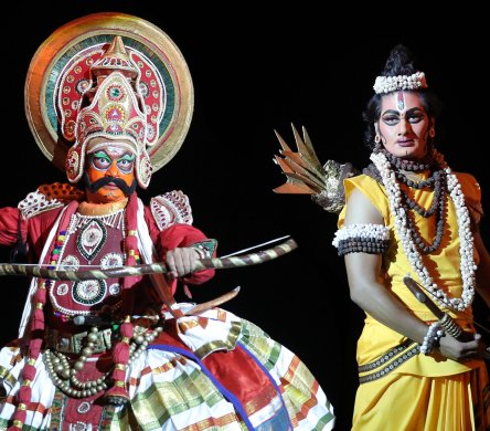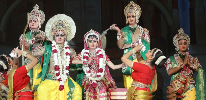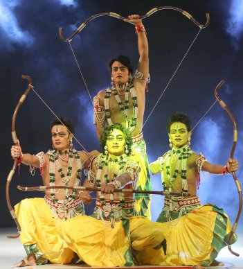 ![]() e-mail: sunilkothari1933@gmail.com Shobha Deepak Singh's enthralling dance-drama 'Shri Ram' Photos courtesy: SBKK October 23, 2019 For the past 63 years Sri Ram Bharatiya Kala Kendra's production of Ramleela continues to enchant the audiences. I remember in early fifties whenever I visited New Delhi from Mumbai, during month of October there was always celebrations of Lord Rama. In those years on multiple stages, Narendra Sharma's choreography of Ramleela was staged. Shashidaran Nair used to coordinate and perform, so many actors performed for a long time. Now the new generation of young male and female dancers performs Ramleela under supervision, direction of Shobha Deepak Singh. As a matter of fact, Ramleela of Sri Ram Bharatiya Kala Kendra needs an independent special history. The present production was inaugurated by the Vice President of India, Mr. M Venkaiah Naidu on 29th September at 6pm. That show was exclusive for invitees and had high security arrangements. We managed to go on 5th October and lo and behold, the magic of the present production held us in thrall. Our generation knows Ramayana backwards. Be it Tulasidas's Chaupais, or Sanskrit shlokas from Valmiki's Ramayana, the popular version of Ramayana and the script written by Arvind Kumar and Neelabh 'Ashk', the spell continues and the moment dancers arrive on the stage playing drums and cymbals and singing, you start humming with them. So powerful is the music arrangement that you start soaking yourself in the lyrics penned by contemporary Hindi poets. Says Shobha Deepak Singh: "Our production imbibes the intrinsic unfailing faith and ideals that offer an opportunity for a socially wholesome evolution, portraying principles in an entertaining manner." 'Entertaining' is the key word. Despite the repeated narrations, the portrayal of Ram, his banishment, Sita's unfailing faith despite personal tribulations, the antics of Ravana and several other incidents remain endearing and resonate long after the curtain falls. This year's Ramayana has few interesting departures. Shobha Singh has introduced fresh animation to enhance the audience experience. As an expert costumes designer, she has re-done the costumes, sets and intelligent light systems for an overall enthralling viewing. Singh reiterates: "Life is complex with much to learn. The journey of Ram teaches us that. In this spirit we can continue our journey, sure in the knowledge that behind every action there is purpose and that of divine." I always remember the saying that so long as mountains and rivers flow, Ram's story will continue to spread on this earth for centuries. Our generation has been fortunate to have learnt the story of Ramayana from our elders, we have seen the traditional Ramleela performed in villages, and we have seen the films Bharat Milap and Ram Rajya, which have left deep impression on our minds. When I saw Bharat coming to see Ram and beg him to accompany him back to Ayodhya falling at his feet, tears welled in my eyes and I was emotionally moved. We were seven brothers and the love we saw between Ram and Bharat always remained an ideal for us. ![]() The royal durbar, Vishwamitra visiting King Dasharatha to ask Ram and Lakshmana to protect the yagna he and other rishis are performing, the annihilating of Ravana's sister Tadaka and other demons, touching the stone and coming alive of Ahalya on way back to Jankapuri, the Sita swayamvara, the placing of Shiva's bow, other invited kings' attempts to lift it and meeting with defeat, one also notices that Singh has not brought Ravana in Sita Swayamvara scene. Rama's lifting and breaking the bow, the joyous loud 'Jayjayakar' filling the open air auditorium keeps audience under a spell. Parashuram on learning of Ram's breaking Shiva's bow gets angry, but Ram pacifies him. The scene where Kaikeyi after being instigated by Manthara, ruthlessly asks Dasharatha to fulfill the two promises he had given her, asks him to send Ram to forest for fourteen years and make Bharat the king, is highly dramatic. The actress playing role of Manthara with her wickedness, sly manner, pretending to be most unhappy and laughing when she sees Kaikeyi falling prey to her advice, steals the show. So does the strikingly good looking, attractive dancer playing role of Kaikeyi, enacting ruthlessness and determination not to submit to entire population of Ayodhya begging her to withdraw her promises and let Ram stay back. The collective agony of Ayodhyawasis does not move her. And we see Dasharatha following Raghukula riti sada chali ayi, Pran jayi par vachan na jayi and he dies. All this put up with much power and back projection of animation visually adding to the narrative engages us to watch despite the fact that we know so much of it. But it is presented with so much colour, verve and action that there is not a single dull moment. At times there is too much of colour bursting forth on the screen, which could have been avoided, as sometimes the images duplicating on the screen and the stage defeat the purpose of showing the same action. Despite an interval, one remains tuned to the story performed professionally with ease. After interval we watch Ram, Sita, Lakshmana meeting Kaivat and he ferries them across Ganga - their going by boat is enhanced by back projection of water. The village women perform joyously welcoming them. They stay at Panchavati enjoying the natural beauty when Shurpanakha visits them, making advances to Ram, who tells her to go unto Lakshmana as he has Sita with him and Lakshmana is alone. When Lakshmana cuts her nose and ears, she reveals her demonic form screaming and running to brother Ravana's court. Meanwhile we see Ravana in his court with his soldiers all wearing Sri Lankan masks. Ravana is being entertained by court dancers dressed in white a la Mohiniattam dancers, but performing a mixed style dance, when blood stained screaming Shurpanakha appears and begs of Ravana to take revenge. Ravana know