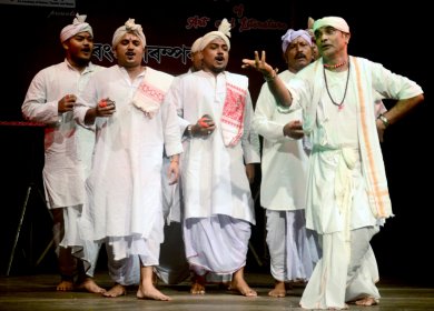 ![]() e-mail: sunilkothari1933@gmail.com Rangayan Festival of Arts and Literature: A festival with a difference Photos: Arup Jyoti Kalita November 8, 2019 I have been visiting Guwahati for past several years on various occasions for research, documentation, conferences, lectures, attending Nritya Parva since 2000 when Sattriya was declared as eighth classical dance and after few years, Sattriya Kendra started arranging annual festival featuring senior and up and coming dancers, and symposiums. Since I was conducting research on Sattriya dances, I visited Guwahati and also other major cities and Sattras on Majuli Island. Over the years, I started following Assamese language and of course made friends. Finally Marg Foundation published my book on Sattriya dances of Assam with photographs by Avinash Pasricha. I had started working on Sattriya dances from 1964 and by 2013 the book was released in Guwahati. It brought me considerable recognition and I was conferred the most prestigious Madhavdev award this year. Working on Sattriya dances, extending its boundaries, discussing with Sharodi various aspects, often staying with her and her husband Dr. Dhrubajyoti Borah, currently Principal at Fakhruddin Ali Ahmed Medical College, Barpeta, and also a literary figure known for his trilogy (Kalantarar Gadya, Tejor Endhar, Artha), I was introduced to vast Assamese literature and the contemporary trends. ![]() Sharodi Saikia (Pic: Sunil Kothari) Sharodi was trained in Sattriya from a young age, under Raseshwar Saikia, when he returned from Uttar Kamalabari Sattra and got married after leaving Sattra and settled in Guwahati, starting Sangeet Kendra teaching Sattriya to female dancers, a revolutionary step. Sharodi along with Indira PP Bora and others were the pioneering dancers. Whereas Indira PP Bora and others also studied Bharatanatyam, Sharodi specialized only in Sattriya. Like Sanjukta Panigrahi who inspired dancers in Odissi, Sharodi inspired young female dancers of Assam to learn Sattriya. Belonging to an erudite family, she also worked in Education Department. She was sent with President Fakhruddin Ali Ahmed when he visited Indonesia, to perform Sattriya dances. Sharodi arrived on national dance scene with her nomination to Executive Board of Sangeet Natak Akademi and performing in Delhi and elsewhere in India. We met often and she extended me all support for my research. During one critical period, she underwent treatment for brain tumour, but by God's grace she recovered and continued to dance. She also was appointed Director of Sankardev Kalakshetra for five years and gained lot of administrative experience. I have dealt in detail on her background, for many would not know how she had battled to survive and continued interacting with several disciplines. I know of no other dancer in Assam organizing such a festival titled Rangayan Festival of Art and Literature (RALF). Her booklet on profiles of luminaries titled Ranga Sampada is a collector's item giving in brief, information on the literary figures, painters, musicians, dancers, scholars and few supporters. This year more than 80 persons were involved in the festival during various sessions. Ranga Parampara ![]() Dr. Irshad Ali, Chetan Joshi and Ratna Ojah The inaugural session Ranga Parampara on 22nd October at Madhavdev Auditorium was by three luminaries. Former Professor of Anthropology, Guwahati University, also a distinguished painter Dr. Irshad Ali, Ratna Ojah, a multifaceted personality, a poet, lyricist, playwright, novelist, actor, director, producer, singer, columnist and translator, and flutist Chetan Joshi, disciple of Pt Raghunath Seth, known for his unique style of performance, playing three and half octaves using a single flute, currently studying further under Pandit Ajoy Chakravorty. The three presented a unique presentation, a 'triveni sangam'. Ratna Ojah recited a poem in Assamese, Chetan Joshi played on flute swaras evoking the mood of the poem and Dr. Irshad Ali drew a painting with water colour showing the daily chores of tribal women. The experience aimed at inspiration derived from three different art forms, literature, painting and music by the gifted artists is unique. Even though brief, it brought three artists together and the audience was exposed to what these diverse art forms achieve when they work together simultaneously. Ojha Pali and Ram Natak ![]() Ojha Pali Then followed the exposition of traditional arts from larger corpus of Sattriya dances, what is known as Ojha Pali. Led by Jatin Goswami's son Gunakar Goswami, a versatile dancer, singer, actor and director, the theme was from Padma Purana of story of Behula, the newly married couple. Under the curse of Manasa, the serpent goddess, the bridegroom was to die by the biting of the serpent goddess. Behula prays to Lord Shiva and regains the life of her husband. Gunakar as the lead Ojha, sang and danced and the four palis, back up musicians, played cymbals and sang along with Gunakar. Though the theme was Shaivite, each prologue shloka was in praise of Narayana, as there seemed to be confluence of Sukananni style of Ojha Pali. Gunakar explained to me that the first shloka is in praise of Krishna, showing river Yamuna and then singing the story which has Shaivite overtones. They all danced and performed with professional expertise. Then followed Ankiya Bhaona Ram Natak directed by Dipak Bora and performed by Abinaswar Gosthi troupe of Nagaon. The two incidents staged were Sita Haran and Bali Vadh. In typical Ankiya Bhaona dramatic form with Brajavali language, the actors took the audience to the familiar story of the epic Ramayana. It is said as long as there are mountains on earth and the rivers flow, the story of Rama will be remembered and enacted by people. ![]() Sutradhar The Sutradhar entered the stage, danced and announced that they were to present Ram Natak. The entry of characters was done from behind the curtain, as is practice in other dance form