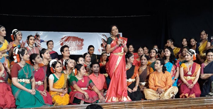 ![]() e-mail: sunilkothari1933@gmail.com Vasundhara Performing Arts Centre presented Sapthati Photos courtesy: Sruti Sagar Hirasave November 16, 2019 On the occasion of the 70th birthday of Bharatanatyam exponent Dr. Vasundhara Doraswamy, Vasundhara Performing Arts Centre and Guru Shishya Parampara Trust presented a unique event including workshop and performances by disciples of Vasundhara on 1st November at Jagmohan Palace Hall, Mysore. It was on a grand scale and organized in a manner which won appreciation of one and all present there to wish Vasundhara a happy birthday. ![]() Vasundhara with her disciples (Photo: Sunil Kothari) Compered by Dr. Bhuvaneswari, dancer and disciple of Vasundhara and currently a faculty member of Dr. Gangubai Hangal University of Music and Performing Arts, it was an event that showcased the excellent training Vasundhara has given to her innumerable disciples over the years. More than hundred students had worked out the event befitting their Guru's achievements. Mention in particular must be made of her principal disciple Varija Nalige, who had choreographed several excerpts of Vasundhara's solos and choreographic works which were danced in a seamless manner. I was lucky sitting next to Vasundhara's son Sruti Sagar Hirasave, now settled in Melbourne, drawing attention to the various works of Vasundhara. It was quite mindboggling and mesmerizing, the way the dancers appeared on the stage one after another so smoothly without ever colliding and taking positions on the vast stage. They performed and invited Vasundhara on stage and offered her their pranams. The devotion and love for their Guru were so transparent that one was deeply touched at this spontaneous expression. The hall was overflowing with admirers of Vasundhara, a tribute to her lifetime service. I was told that on previous day more than 100 students had registered for day long workshop. Vasundhara's disciples from USA, UK, Singapore, Hong Kong, Melbourne, Qatar, Bangalore and local had assembled to felicitate and dance on this occasion. As the author of the book 'Vasundhara: Odyssey of a Dancer', Prof George S Paul told me that it was like another Dussera celebrations in Mysore. ![]() Vasundhara conducts workshop I had visited Mysore for the first time forty years ago when Vasundhara and her husband Doraswamy had invited me to the festival they had mounted featuring performances by Vasundhara and her students. The legendary dance critic Subbudu was also invited. And from Bangalore, teenage dancer Kiran Subrahmanyam had also come and played upon mridangam eliciting praise from Subbudu. I was duly impressed by Vasundhara's performance and had carried happy memories of it. Over the years those impressions were further enhanced seeing her performances in Mumbai at Kal Ke Kalakar and Sur Singar Samsad as she was awarded Singar Mani award. When I was commissioned to write a book on Bharatanatyam for Marg publications by Dr. Mulk Raj Anand, the dancers from Mysore whom I had then known were the legendary Venkatalakshamma, her daughter Shakuntala, and Vasundhara. In those years, I was told that Vasundhara had studied dance from her very young age at her birthplace Moodabidri under one Muralidhar Rao. He had studied under Salem Rajaratnam Pillai (not to be confused with SK Rajaratnam Pillai). Salem Rajaratnam Pillai was a direct disciple of Pandanallur Meenakshisundaram Pillai, and was well versed in Pandanallur bani. He was earlier invited by Vallathol Narayana Menon at Kerala Kalamandalam to teach Bharatanatyam. Thus Vasundhara's foundation was strong and she blossomed into the Pandanallur bani. The story of Vasundhara's life is well documented by Prof George in the biography he has written which was released next day at Kalamandir Hall. ![]() Vasundhara stepping in ![]() Chenda players The celebrations next day were even more elaborate and grand. At the entrance was a team of chenda players welcoming the guests. Vasundhara was brought in a special car, fully dressed in costume to perform a one hour long presentation of her favourite solo of Sita. She was brought in a procession and her disciples showered flowers all the way up to the hall. At entrance she was asked to dip her feet in kumkum and on a white chaddar, imprint of her feet were taken by the disciples. We were then led to the exhibition of various photographs of Vasundhara, her family, her performances, the innumerable awards she had won, the brochures, program books, her books including the one she has written on Yoga and dance, photos of her taking Yoga lessons and Kalaripayattu lessons, her dance gurus, Yoga gurus, press clippings and what have you. Meticulously curated, the exhibition was a delight to go through and well documented by her disciples. The evening began with screenings of videos which included a message of Australia based Mohiniattam exponent Tara Rajkumar. Sruti Sagar is settled there with his wife Meghala, a disciple of Vasundhara, and she has been teaching Bharatanatyam and Yoga there at her institution 'Art of Vinyasa.' Meghala came in close touch with Tara Rajkumar and under her guidance and suggestions, she has started celebration of World Dance Day and managed to get the dancers in Melbourne together. She has served as the Secretary and Advisor for dance at the Federation of Indian Music and Dance, Victoria, and has been a major contributor to Indian classical dance and music fraternity in Australia. Meghala has recently won the Community Services Award from Federation of Indian Associations, Victoria. Tara Rajkumar spoke with great admiration for Vasundhara's art and her reach beyond India. The videos projected rare photos of Vasundhara's dances and solos and would be very important documentation on her life and work. Solo performance of Sita ![]() ![]() Vasundhara in 'Sita' The evening began with much awaited solo performance of Vasundhara's favorite Sita. All seemed agog to see how at 70, Vasundhara was to perform