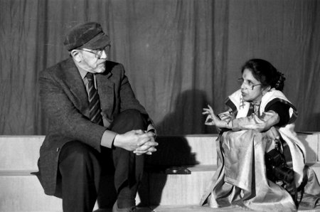 Courtesy: Shobha Deepak Singh But since he had studied dramatics at Royal College of Dramatic Arts in London, he chose theatre to painting. He established Theatre Unit, published a journal also. He staged plays on the terrace of his residence at Napeansea Road, where we had seen his direction of Samuel Becket's play 'Waiting for Godot.' Not that at that time Bhupen and I could follow or appreciate it, but because of its thorough professional approach it left an indelible impression. The late 50s and early 60s were a very exciting period. I remember also Ibsen's play 'Hedda Gabbler' in which Hima Devi, the well known dancer had played the lead role. Alkazi saab joined hands with the Padamsees who were very active in presenting English Theatre. We had also seen one of Alkazi saab's play at Bhulabhai Memorial Institute staged in open air stage. ![]() 'Tughlaq' by Girish Karnad, Dir. E. Alkazi, National School of Drama, Purana Qila, New Delhi 1976 Courtesy: Alkazi Theatre Archives ![]() 'Hedda Gabler' by Henrik Ibsen. Dir. E. Alkazi. Hima Devi as Hedda Gabler. Theatre Unit, Bombay, 1958. Courtesy: Alkazi Theatre Archives Alkazi saab moved to New Delhi to head the National School of Drama in 1962 and was director there till 1977. He revolutionized the Hindi theatre. His staging of Shakespeare's plays took the public by surprise for thorough professionalism. As a director of the national institute he brought an order, a curriculum for theatre studies, direction, music, acting, set design, study of western plays, established a rich library. He believed in having the place for study, theatre, performance, spic and span. It has become folklore in Indian theatre that Alkazi saab took broom and cleaned the toilets! He was a strict disciplinarian, believed in keeping time, students dare not come late for the classes, or display any slackness in competing the homework assigned to them. He spoke chaste English and mastered Hindi. Born in Pune in a well-to-do Arab family, he knew Marathi well, had studied at St. Xavier's College in Mumbai and later on had been to London. ![]() E. Alkazi with his students in Bombay on the occasion of the Time Talents Award, 1998 Courtesy: Alkazi Theatre Archives ![]() E. Alkazi with Manoher Singh Courtesy: Alkazi Theatre Archives ![]() E. Alkazi with Ratan Thiyam Courtesy: Shobha Deepak Singh Besides Western theatre he staged with equal respect Hindi plays, Girish Karnad's Tughlaq, Premchand's Godan, Jasma Odan directed by Shanta Gandhi. His by now legendary staging of Dharamveer Bharati's 'Andha Yug' at Firozshah Kotla ground and later on at Purana Quila is too well known, and were attended by Prime Minister Pandit Jawaharlal Nehru and also by Atal Bihari Vajpeyi. Among his colleagues was Govardhan Panchal whose seminal work on Koodiyattam resulted in a book published by Sangeet Natak Akademi. He had invited Shivram Karanth to direct a play in Yakshagana style, Barman Van. ![]() 'Andha Yug' by Dharamveer Bharati, Dir. E. Alkazi. Rajesh Vivek as Ashwatthama, National School of Drama, Purana Qila, New Delhi, 1974 Courtesy: Alkazi Theatre Archives ![]() E. Alkazi at the rehearsal of 'King Lear,' National School of Drama, New Delhi, 1964 Courtesy: Alkazi Theatre Archives Exposing the student to world theatre, Japanese Noh plays were staged. The theories included study of Bharata's Natyashastra and aesthetics of Zeami. Students were encouraged to visit paintings at National Gallery of Modern Arts. They were asked to attend classical dance performances by legendary dancers like Balasaraswati, Kathakali by great Kathakali actors, and Kathak by the Kathak maestros and Manipuri by visiting dance troupes. Training in dance, which was termed study of movements, was a must. He invited Rita Ganguly to teach movement to actors. A versatile Kathakali and Bharatanatyam dancer having studied under great masters, Rita had also studied Kathak and Modern dance under Martha Graham. She had learnt Hindustani vocal music under Siddheswari Devi and Begum Akhtar. The martial arts were also part of training - not only Kerala's Kalaripayattu but also Manipur's Thang-ta with swords and spear. The entre approach was holistic. To get admission to NSD was considered a great boon. Earlier the National School of Drama was a part of Sangeet Natak Akademi and classes were held on the third floor of Rabindra Bhavan, where a small theatre was specially built to rehearse and stage plays. Later on, NSD moved to Bhagwandas Road and had more spacious place for classes and staging plays. Alkazi saab created an open air theatre behind Rabindra Bhavan titled Meghdoot where in open air, plays were staged. I have many happy memories of having seen plays there, among which I recall having seen 'Begum Barve' in which Uttara Baokar had played the lead role and sung the songs. Later on, I had seen 'Mahabhoj' play directed by Amal. Whenever I visited Delhi, I never missed any opportunity to see the plays at NSD. It was a great education to watch the plays and meet actors some of whom became friends; among them Ratan Thiyam is my dearest friend and later on I worked with him for more than thirty years, visiting Imphal, watching the rehearsals and seeing the plays. I travelled with his Chorus Repertory Theatre world over and could see how under guidance of Alkazi saab, Ratan had imbibed the art. My close association with Ratan brought me close to Alkazi saab. I was a great admirer of Alkazi saab. He used to attend my lec-dems on dance. One was arranged at Pergola of India International Centre and Uma Sharma was performing. He liked our lec-dem and encouraged me to continue such series. Jiwan Pani, the Odiya poet and scholar, had joined SNA as Asst Director for documentation. He had produced 'Ravan Chhaya,' a documentary film on shadow plays of puppets of Odisha. When he approached Alkazi saab to give commentary in English, he readily agreed. Meeting him was always an education. He was particular about timings and would m