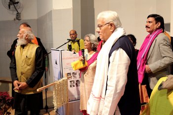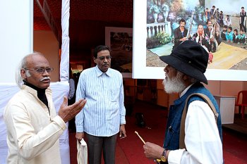 The design and master plan have been made by the architect Balkrishna V Doshi which has been approved by the local authorities. In 2004 the centre held its first major programme, a national seminar on conservation of art of nature and man made art. Also simultaneously, a National Camp for sculptors and potters was held. For the past 10 years, Jatin is organizing 'Meet the Artists' monthly program. In 2006, the JDCA Film Forum was set up for archiving short and documentary films on art and artists. This non-competitive film festival is supported by the Central and State governments. The centre will house, conserve and promote whole range of arts: photography, sculpture, crafts, graphics, films, architecture, pottery, painting, handicrafts, handlooms and hand fans etc. More than 6,500 pankhas (fans) are collected and they have travelled world over. The latest exhibition was at Maximum India at the Kennedy centre at Washington DC in March 2011. Jatin has more ambitious plans: to have an open air auditorium, 22 galleries for various objects, artifacts, antiquity, books, paintings, toys, his own works and also those of his contemporaries, publications programs and outreach program for schools. The Short and Documentary Film Festivals have screened several documentary films by directors from all over India. The collection of CDs, DVDs of documentary and short films is a veritable archive. All the activities of the Centre have been funded by the sale of Jatin's paintings and a trust has been formed granting exemption under section 80 G. Several eminent film personalities, film makers from all over India have participated in these festivals. Name them and all of them have lent Jatin support from year to year. I was roped in to bring films on dance and films made by Indian Diaspora dancers. Kumar Shahani, Arun Khopkar, KG Subramaniam, Adoor Gopalakrishnan, Jatin's daughter film actor Nandita Das, his brother Biren Das, local poets like Sitakant Mahapatra, Ramakant Rath, Devdas Chhotray, JP Das, local film makers Nirad Mahapatra, Italian dancer Ileana Citaristi settled in Bhubaneswar for past 33 years, local journalists, Odissa governor Murali Bhandare, photographer Raghu Rai, a list too long to mention here, have generated interest in short films and an entire young generation of IT students, MBA students throng to see the films. ![]() Jatin Das and Raghu Rai ![]() Dancers ![]() Nirad Mahapatra and Jatin Das ![]() Sujata Kulshreshtha, Renuka George, Uma Magal, Kavita Bahl This year the theme was 'Celebrating and Reminiscing Masters' who recently passed away - Jehangir Sabavala, MF Hussain, Dashrath Patel, Rudra Veena player Ustad Asad Ali Khan, who was Jatin's and my neighbor at Asiad Village, BC Sanyal saab, Mani Kaul. Documentary films on them and Mani Kaul's films, Nandan Saxena and his wife Kavita Saxena's films on poetry, Renuka George's film on Ustad Asad Ali Khan, Navroz Contractor's film on Zadu (brooms), Arun Khopkar's on Jehangir Sabavala - Absence of Colours - one on Hussain when he was in Dubai and painters from India went there to see him, film made by Bidisha Ray Das, were screened and were attended by large crowds. The films are screened at Suchana Bhavan, and Jatin designs a pandal for exhibition of Odiya handlooms, crafts, and photographs (plus typical Odiya delicacies), and manages to get ready in time catalogue of films with synopsis, giving brief introductions of films to be screened. Memorable films screened were on Ustad Asad Ali Khan, Mani Kaul's The Cloud Door, films on poems of Basho by Nandan and Kavita Saxena, The Story of Zadu by Navroz Contractor, MF Hussain's short films Culture of Street, Six days of Making, Film on Raghu Rai during his visit to Kumbha Mela made by Suresh Kohli, Sujata Kulshreshtha's film on painter Satish Gujral, Gialogue, a 3 minute short film on painting and environment where factory is located by Hyderabad based film maker Uma Magal, Devi Prasad by Ajai Chawla etc. There was an excellent session of poetry reading by nine eminent Odiya poets and poster poems on special posters, a novel concept. JP Das had conceived this session. Ramakant Rath, Sitakant Mahapatra, Hariprasad read poems in Odiya and also their English translation. To involve creative persons from different walks of life was a wonderful idea and a full house attended that memorable session. Often photographer Raghu Rai, others and I who knew some of the film makers were asked to speak about them. There was an interesting interaction and sometimes local members also asked questions. It was an intense experience. Evenings were devoted to get-togethers, performances by local artistes and dinners at the site, so that people could meet at leisure in a celebratory mood. Also delegates at Ginger Hotel spent time discussing various issues over breakfast and planned on how to strengthen the movement. The catalogues of past five film festivals and the present one give a mine of information and material for students of films and film makers. It has been now decided to hold a festival in January every year for three days. Aruna Vasudev, Jai Chandiram, Nandan and Kavita Saxena, Radhakrishnan, Raghu Rai, Uma Vasudev, myself and a host of well wishers have decided to streamline the festival so that the best of the films shall be screened and the aim of promoting short films and documentary films be achieved in a more meaningful manner. Bhubaneswar seems to be agog with a series of festivals of dance, music, and allied arts at this time - besides well known Konark Dance Festival, Dhauli Festival, Kalinga Martial Arts Festival, Mukteswar Dance Festival, Raja Rani Music Festival and this festival of short and documentary films is another unique festival, one and only of its kind. ![]() Dr. Sunil Kothari is a dance historian, scholar, author and a renowned dance critic. He is Vice President of World Dance Alliance Asia Pacific India chapter, based in New Delhi. He is honored by the President of India 
