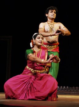 Margam Festival, Bengaluru (March 29 - 31, 2012) - Dr. Sunil Kothari e-mail: sunilkothari1933@gmail.com Pics: Shandilya Srivatsa April 4, 2012 An unusual three day festival focusing on varnams in Bharatanatyam suite was conceived by Usha RK based in Bengaluru. She has been active since past 30 years and is organizing several dance events. As a part of the Golden Jubilee Celebrations of The Music Academy of Bengaluru at Chowdaiah Hall, co-sponsored by Dept. of Kannada and Culture, with support from SLV Enterprises, Indus Sports Resorts Pvt. Ltd, Vaishnavi Palace, Nrityanjali School of Bharatanatyam of Poornima Ashok, Usha succeeded in her aim at focusing attention on varnams. Every evening at 6 pm, dancers took to the stage and within one hour performed a varnam, preceded by a number and included one more number either a javali or a tillana after the varnam. But the aim was to concentrate for nearly 45 minutes on varnam to retain its flavor to relish the structure and scope of abhinaya in a varnam with its musical excellence, bringing back the glory of a varnam in the present day dance scenario, where attention span of the audience has been wavering within 30 minutes and varnams are getting shortened to suit the patience of the audiences. A praiseworthy aim and indeed succeeded as the audience, though thin (on account of forthcoming examinations towards end of March) responded with rounds of applause at the right moments. The evening performances were a connoisseurs' delight. There was a conscious effort on part of the performers to give the best while enjoying the time frame that allowed them to relax and not rush through. Since the presentations of varnams included solo expositions, two duets and one group presentation, the audience got an opportunity to see various possibilities of dancing a varnam in different formats. Soundarya Srivatsa, wife of the vocalist Srivatsa, opened the evening with Pushpanjali and straight went to Tanjore Quartette varnam in Bhairavi, Rupaka tala . The varnam Mohamana is a favourite of dancers. It allows a dancer to display command over nritta, pure dance and abhinaya, expressions. The musical score has also to be done justice to. Soundarya, a former disciple of late Narmada has been studying with Bhanumati and had recently studied under Yamini Krishnamurty when she had conducted a workshop in Bengaluru. Tall with attractive stage presence, Soundarya was in fine fettle. Her nritta was flawless, lines arresting, diagonals delightful, architectonic beauty of Pandanallur bani to the fore, jathis rendered in due measure, and teermanams performed with split second precision, winning rounds of applause from an appreciative audience. She set the mood for the evening from the word go. Nayika watching the Lord in a procession, with dancers performing in front, drummers playing upon drums, the wind instrument players and musicians evoking the splendor - the references to Thyagesha and Bhogesha and the finale with Kama's pancha bana, five flowery arrows - all were enjoyable. There was no attempt to show off which was a welcome approach. The solfa notes and tatta mutti adavus in the end kept audience tapping the feet and keeping the tala. A javali in Kapi and mishra chapu tala gave scope to Soundarya to bring in shades of jealousy, feelings of hurt and showing anger with sarcasm by a nayika, requesting the truant lover to go when he tried to appease her. ![]() Soundarya Srivatsa ![]() Shijith Nambiar and Parvathy Menon Before the dancing duo Shijith Nambiar and Parvathy Menon from Chennai appeared, there was a brief felicitation ceremony to recognize the services of H N Suresh, Director of Bharatiya Vidya Bhavan. He has been working hard to promote arts in general and dance in particular for the past thirty and more years, and has proved a model for serving with exemplary dedication for an institution like Bharatiya Vidya Bhavan. A well deserved felicitation. He is a part of the cultural scene of Bengaluru and an asset to Bhavan. No wonder after Mathur Krishnamurty-ji's passing away responsibilities have been placed on him for his proven abilities and single minded devotion. Shijith and Parvathy displayed their thorough training at Kalakshetra. I had not seen them earlier. This was also their first performance in Bengaluru. In Neelambari varnam in Sanskrit by Swati Tirunal, the duo displayed imagination, understanding, individual roles, sound nritta, appropriate sancharis, improvisations, with narration and well known episodes about the Lord's helping devotees in distress. Episodes of Gajendramoksha, Draupadi vastrapaharana, Krishna and Gopi playing in full moonlight, and in the finale darshan of Lord Padmanabha through three doors et al were well performed. Except for fast paced teermanams, which did not jell, the nritta was pleasant. The treatment of a varnam was not hackneyed and the two dancers were not emoting the same expressions simultaneously like repeating what one did. Indeed they took up a challenge to perform a varnam by two dancers together and resolved the problem of dancing same thing which would have looked incongruent. They stole the show by performing to a Surdas pada choreographed by Leela Samson, in which Krishna asks Radha who she is and why she has come to play where he is. Radha does not allow Krishna to get away with all flattery, but is won over by his advances and when he picks up the bindi from the floor and places on her forehead, she is overwhelmed. So was the audience, who gave an appreciative applause to this subtle, nuanced gesture. As a pair they danced well and won the hearts of the cognoscenti audience. They concluded with Lalagudi's tillana in Revati raga choreographed by Leela Samson. They had good support from a team of musicians whose finesse was evident highlighting the dance. On the 2nd day, Dr. Suparna Venkatesh, a disciple of Jayalakshmi Alva, presented four young dancers, two male and two female in group choreography in varna