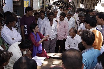 Mallika Sarabhai stands for Lok Sabha election as an independent candidate - Dr. Sunil Kothari e-mail: sunilkothari1933@gmail.com Photos courtesy: Friends for Democracy April1 16, 2008 When I sent an e-mail congratulating Mallika Sarabhai for her decision to fight the election, she responded immediately and invited me to meet her during my visit to Ahmedabad. The day I arrived, her cousin Srilatha Swaminathan (daughter of her late uncle, lawyer Govind Swaminathan) was at her residence with her husband to lend support to her. Srilatha is an actor from NSD, a Central Committee member of Communist party (CPI -ML). She had driven for hours form Jaipur to arrive in time for the evening press conference held in the compound of Chidambaram, residence of Mallika at Usmanpura. We had a lunch appointment with Mallika's mother Mrinalini Sarabhai. Mallika was to join us along with her son Revanta, daughter Anahita, Bipin Shah and others. She had gone to address a rally of women at some village. So we were told to go ahead and I caught up with Mrinalini whom all address as Amma. ![]() ![]() We started our conversation: Mallika: I am contesting because I have more than twenty years of experience working in grass roots development. Two years ago you saw my production 'Unsuni' at IIM Bangalore and at the end of the presentation during Q and A you had asked me about the women scavengers about whom I had enacted a scene, remember? Sunil: Yes. I did not know that still 60% of workers are women scavengers. You told me that though there is a law against employing women, the law is observed more in breach than in practice. Like me, many IIM students did not know this fact. You had also explained why justice delayed is justice denied, when the case of ownership of land, taken away from women, is not resolved and the courts postpone the hearings... Mallika: I returned today after speaking to a group of women at the village, who told me that they are rag pickers. They have no toilet facilities. They get up early in the morning to the open spaces before people wake up and return as quickly as they can. This basic facility is lacking for women. In Gandhinagar there are a few Sulabh public toilets, charging Rs.2 as fee and they open after 8am. If we listen to their plight, we start feeling guilty, of course. But what do we do? I have been fighting for these facilities to be made available to women. One of the several causes. There are many other causes... ![]() ![]() Mallika: Yes, main reason is to uphold the constitutional values of secularism and democracy. Sunil: There were legal cases filed against you. Have they been cleared? Mallika: Yes. If you have not committed any crime and some smart people frame charges against you, after a while it gets cleared. I believe in fighting fearlessly, confronting the politics of hatred, divisiveness and exclusion. Sunil: Tell us more about using art as an agent for change. Mallika: In my productions like 'Unsuni' and 'Unsuni: Two,' I use arts creatively and innovatively, combining it with my management education to create effective ways of addressing issues of social relevance. You witnessed the response at IIM, Bangalore. As an activist, I gave more than 32 free performances in various schools, institutions and held Q and A after the performances to engage audiences in a dialogue and create awareness about issues which generally are pushed under the carpet. Or else we are comfortable with our lives and live without giving much thought to such issues. Sunil: Your involvement with movement for women's rights... Mallika: That is fundamental. The phrase empowering women has become a cliché, but one has to consciously work towards it. ![]() ![]() Mallika: Why not? I have several advantages. I belong to a family that has fought for India's freedom and for three generations, has contributed significantly in the areas of science, arts, industry and education. As a Global Gujarati, I welcome influences from all directions, without getting swayed away by anyone. I have acted in Gujarati films, have a busy career as a classical and contemporary dancer, am known nationally and internationally and have support from so many NGOs and public. I am not limited by partisan politics and power struggles. I also believe that, if elected, one can discuss issues in parliament freely. I know I am fighting against powerful people, but I do not care if I lose even deposit money. I am collecting funds for election and all accounts are transparent. I have no funds which are tainted black money. People have donated voluntarily. One must face honestly the challenges in politics also, and steer clear of wrong ways and means. It is possible to do so. When some of the media/papers ask for money in terms of lakhs, I say I do not give money like that - there is electronic media, whose reach is far and wide and if the print media does not publish what I say, it hardly matters. People watch TV and also the word spreads... Sunil: In CNN-IBN channel interview, you explained about corporate sector's stand and governance in Gujarat under Narendra Modi. Mallika: Doubtless corporate sector's main aim is to make profit. If there are fewer hassles, they are happy to give in to the ruling government, as the supposedly good governance gives them scope for more profiteering. But there is also social responsibility and I beseech and appeal to corporate sector to fulfill those responsibilities. ![]() ![]() Mallika: That is the point I made and told the interviewer and electronic media to reach out to this comfortable class and wake them up. It is the duty of interviewers and editors of such channels to play that role. And the interviewer agreed graciously! Mallika made an impassioned speech. In the evening Srilatha Swaminathan with Gujarat Communist Party representatives made a speech and announced that the Communist Party of India (Marxist Leninist) is pleased to announce its official support to Mallika Sarabhai who is s