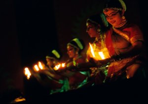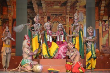 Ramayana: A dramatic presentation of the great Indian epic - Dr. Sunil Kothari e-mail: sunilkothari1933@gmail.com Photos: Shoba Deepak Singh October 27, 2012 The genesis of Shriram Bharatiya Kala Kendra (SBKK) can be traced to a small sponsoring body Jhankar, set up in 1947. The Kendra formally came into existence in 1952. Since then it has grown and become a premier cultural institution of India, with an active focus on the preservation of the country's cultural heritage and the promotion of its performing arts. The Kendra maintains a permanent dance-drama group whose objective it is to enshrine and present, as aesthetically as possible, the best of India's religion, mythology and folklore. ![]() Diya dance