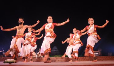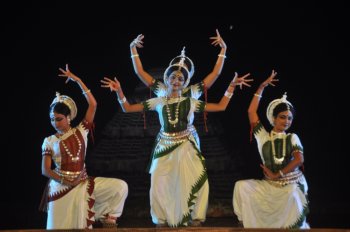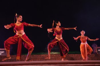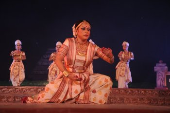 Konark Dance Festival 2012 - Dr. Sunil Kothari e-mail: sunilkothari1933@gmail.com Photos: Arbinda Mahapatra for Odisha Tourism December 11, 2012 The festive mood When we arrived at Konark from Bhubaneswar, what we saw was indeed a festive mood. Right from the various colourful decorations on several trees leading to the venue and to the entrance of Yatri Niwas where an exhibition of paintings was mounted on the lawns, the huge posters announcing Konark Dance Festival 2012, the music played by the mahuri and nagada players to the presentation of folders about Konark Dance Festival and Tourism, we could see that the man behind the festival had taken pains giving attention to minutest details, leaving no stone unturned, to make the visitors feel that they had come 'to the land of festivals.' Under his passionate zeal and a commendable ability to get all involved in mounting the festival, the principal secretary, Dept of Culture and Tourism. Mr. A.K. Tripathy has left his signature on the festival. The group of artistes including Aruna Mohanty (Odissi exponent and Vice President of Odisha Sangeet Natak Akademi), Ratikant Mohapatra (guru, performer and son of legendary Guru Kelucharan Mohapatra), his associate Deviprasad Mishra aka Tikki, Sangeeta Mahapatra (Reader in vocal music at the newly established Utkal University of Culture), Ram Hari Das (musician and Director of GKMORC, Professor in Music at Utkal University of Culture), were in charge of the smooth running of the festival. From exquisite lighting, seating arrangements, sound system, clean and artistic vast stage, with magnificent view of the tower of Konark temple, Dr. Mrityunjay Rath, the ace compere in Odiya language and celebrated compere Sadhna Shrivastav with her vast experience for nearly three decades, the highly professional approach no wonder places Konark Dance Festival in the international category! In the evening, as it were the stars descended upon the earth and lit up the trees, hundreds of colourful lamps, with cylindrical thumbus like hangings from Pipli village, the umbrellas, the long garlands of small bulbs, the flags, and the path leading to the stage and open air auditorium with floor designs, hangings beautifying the path added to the festive atmosphere. It looked like Diwali, festival of lamps. The disciplined way the audience was led to take the seats, the upper gallery with tasteful canopy for lighting completed the ambience putting the audience in a pleasant mood. I had missed the festival for nearly eight to nine years and when I saw the metamorphosis, I was absolutely overwhelmed. Many who came to the venue after an interval of few years complimented Mr. A.K. Tripathy, who was seen attending to various details of the festival. Now in its 24th year I was involved with the festival from the beginning when Kum Kum Mohanty conceived it and with help of the Chief Minister Biju Patnaik, formed a committee including dance experts, gurus, and bureaucrats and organized it in 1989 at the open air auditorium which was specially constructed with the financial assistance of the Government of India. The dual objective was to promote classical dances of India and Konark as well as Odisha as a tourist destination. A makeshift Yatri Niwas was also built where dancers could be accommodated. In order not to have any objection from the Archaeological Department, the site was chosen away from the main temple, keeping in view the existing tall shikhara of the Konark temple, which formed the backdrop. It was quite exciting for all of us to get involved in various details, and I remember our annual meetings for selection of dancers. Initially, during 1989 and 1990, the festival was organized for a period of three days only. Subsequently it was increased to seven days during 1991 and 1992 on different dates. Since 1993, the festival is being organized for a period of five days from 1st to 5th December every year. The only year it was not organized was during 1999 due to the super cyclone. I attended it every year till 2000 but could not after that on account of my other engagements. However, this year when I received the formal invitation, I was delighted to attend and saw for myself what a marvelous transformation it has undergone. The participating dancers were, on arrival, put up at Bhubaneswar, but soon joined for the rehearsals at Konark and stayed overnight after the performance at Yatri Niwas. It was like a get together for all of us over dinner and breakfast, discussing finer points of the performances. We used to have similar interactions at Khajuraho Dance Festival and were reminded of those halcyon days. A galaxy of dancers This year, Konark Dance Festival (1-5 Dec 2012) featured a galaxy of well established dancers -Mallika Sarabhai and her Darpana dance troupe from Ahmedabad (Bharatanatyam), Raja and Radha Reddy and their Natya Tarangini dance troupe from Delhi (Kuchipudi), Bharati Shivaji and her troupe from Centre for Mohiniattam also from New Delhi (Mohiniattam), Malabika Mitra and her troupe of Shibpur Onkar Dances and Music Centre from Kolkata (Kathak), Anita Sharma and her troupe of Abhinay Dance Academy, Guwahati (Sattriya), Madhavi Mudgal and Gandharva Mahavidyalaya's disciples from New Delhi, Meera Das with her troupe of Gunjan Dance Academy, Cuttack, Kasturi Pattanaik with disciples of her institute Sankalpa from New Delhi and dancers of Guru Kelucharan Mohapatra Odissi Research Centre and Utkal University of Culture (Odissi), recently established in 1991. The festival was flagged off with Madhavi Mudgal and her troupe's Odissi group presentation. Day one ![]() Madhavi Mudgal's group